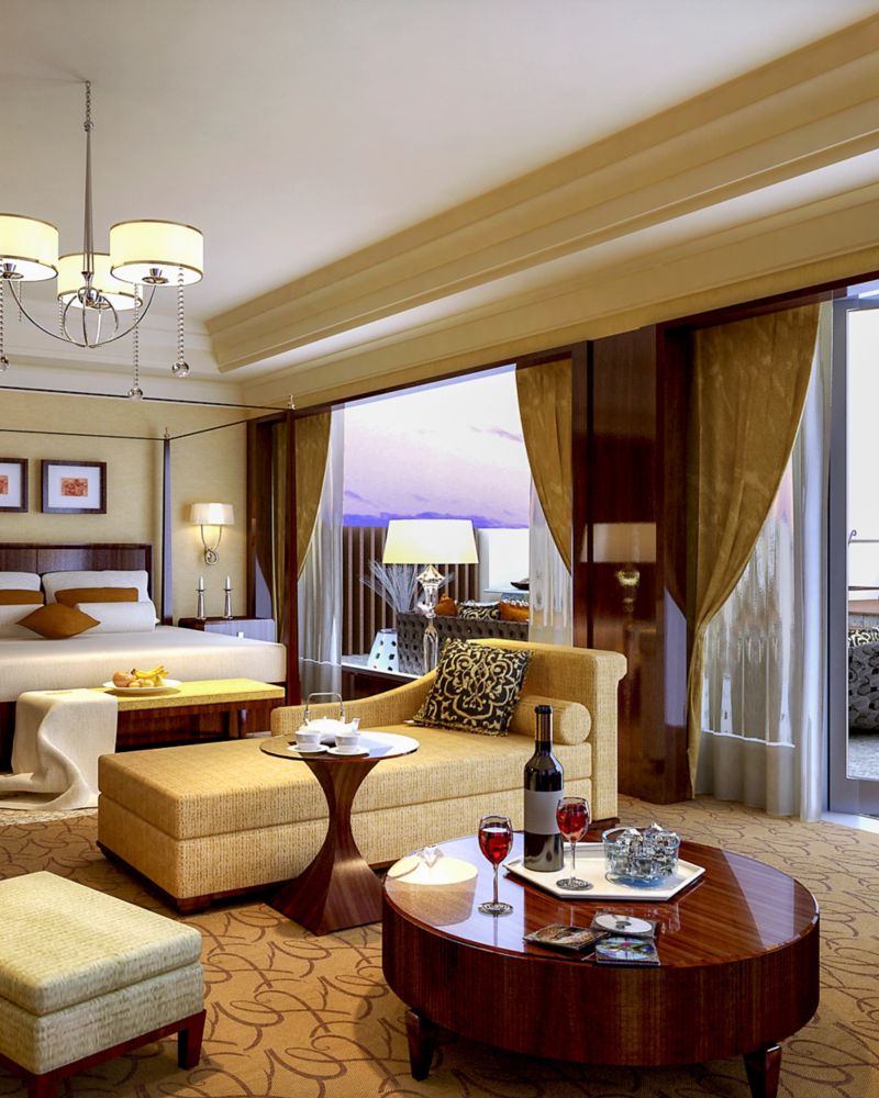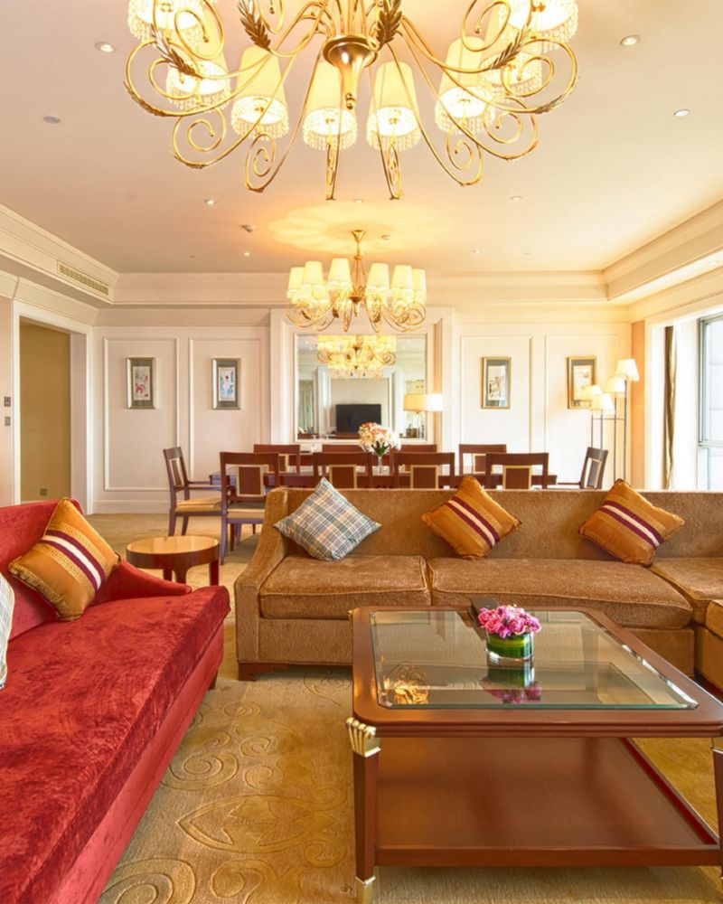 It offers an impressive view of the lake from the top of the hotel, and also a private balcony. The décor is Asian-inspired, and offers a separate parlour area, designed for visits from friends or for a family gathering.