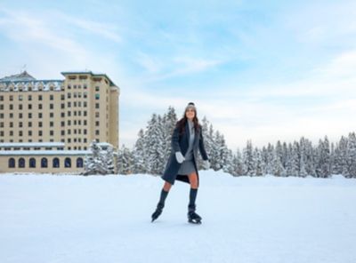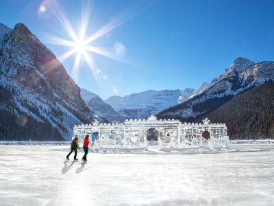 Step onto our icy stage and embrace the spirit of winter, with the dramatic Victoria Glacier and snow-dusted Rocky Mountains as your awe-inspiring audience.