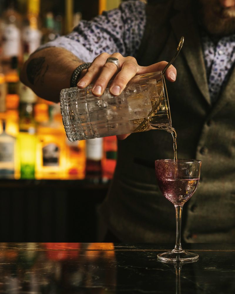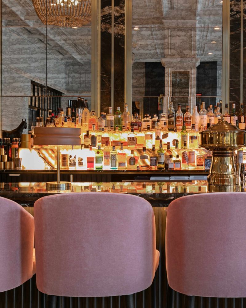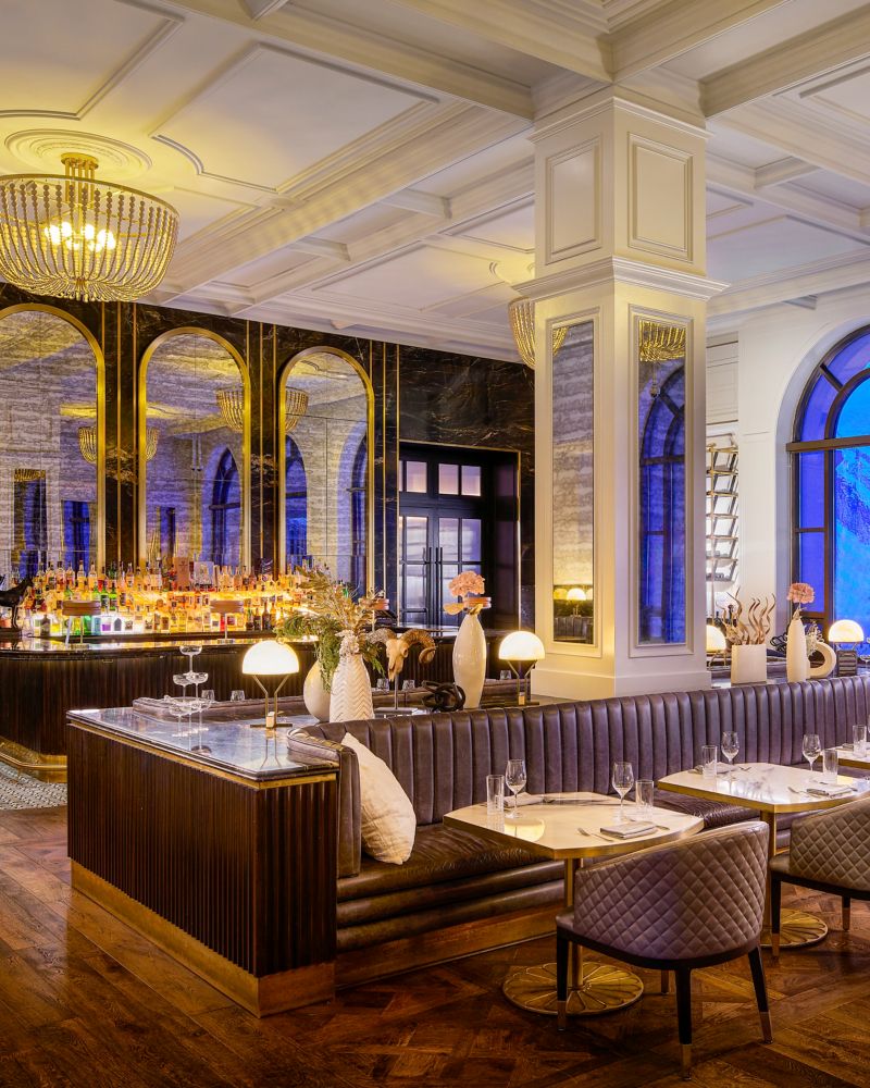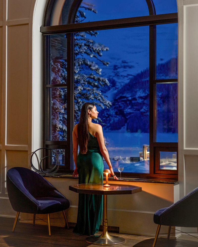 Floor-to-ceiling windows frame stunning views of Victoria Glacier, blending the outdoors with the contemporary, classy interior. With Art Deco touches of dark marble and brass, retro-chic lounge chairs, and modern art, Fairview Bar and Restaurant offers an unmatched dining experience, solidifying its place as a top spot in Lake Louise.