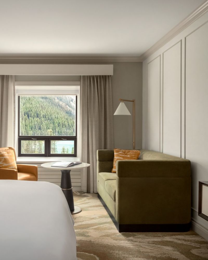 CHECK RATES SEE DETAILSLarger Guest Room with 1 King Bed Featuring Spectacular Views of Lake Louise & Victoria Glacier. Ideal Accommodation for an Individual or Couple. 370 ft² / 34 m².