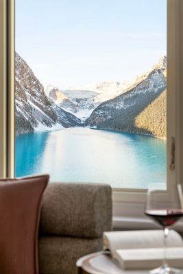 Private Lounge with Concierge Services Offering Breakfast & Canapes. Guest Room with 1 King Bed. Spectacular Views of Lake Louise & Victoria Glacier. 215 ft² / 20 m².