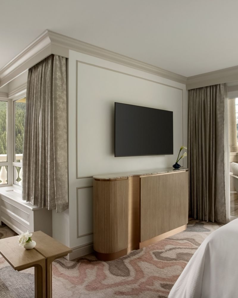 Split Level Signature Suite with 2 Terraces Offering Sweeping Views of Fairview Mountain, Bow Valley & Partial Lakeview. Access to Fairmont Gold Amenities. 1 King Bed, 2 Bathrooms. 870 ft² / 80 m².