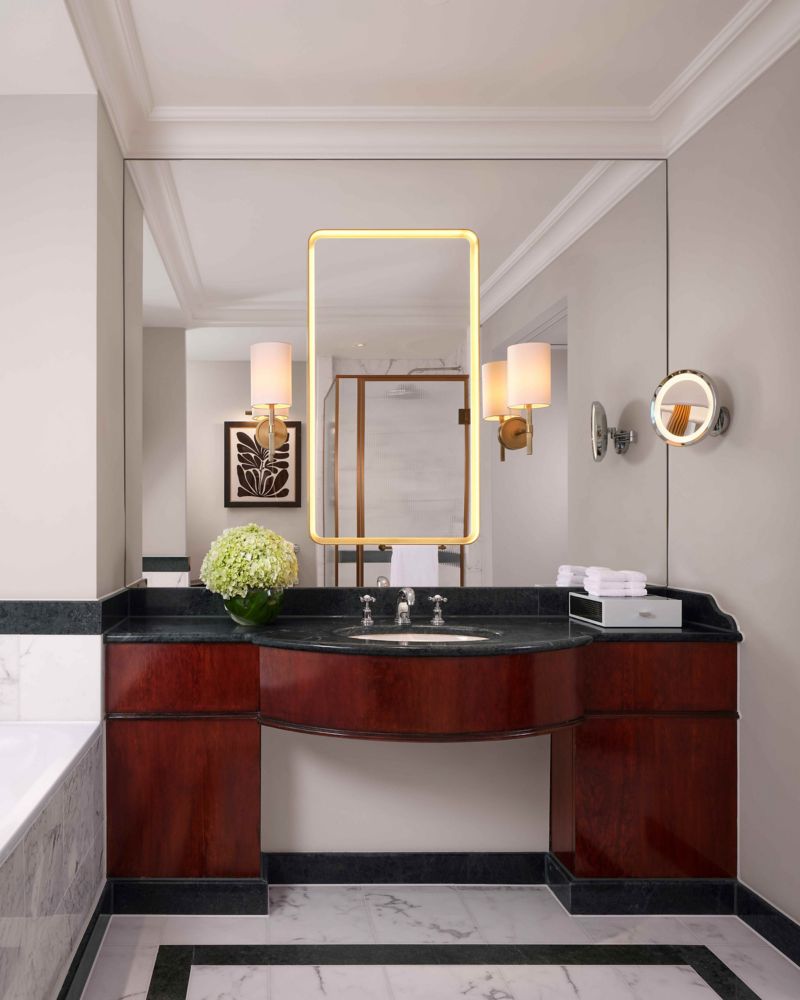 The stunning Savoy Suite comprises an entrance foyer, master bedroom with en-suite bathroom and dressing room, residential-style lounge with fireplace and private bar. Please note that room rates exclude a discretionary service charge at 5%.