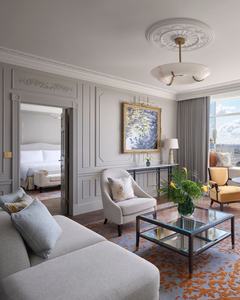 The Royal Suite is the jewel in The Savoy's crown of suites, offering panoramic views of the River Thames and London landmarks. Please note that room rates exclude a discretionary service charge at 5%.
