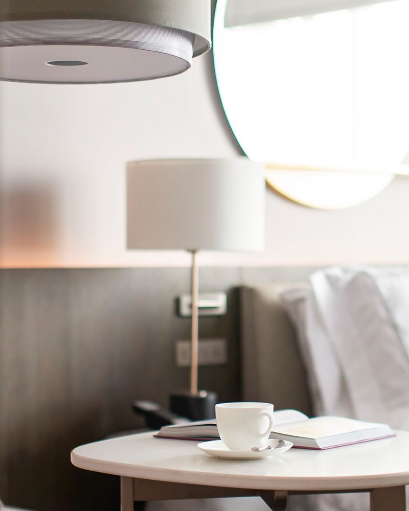 Soaked in natural light, an expansive sanctuary of sleek and contemporary design. These corner suites offer 2 private furnished balconies, 2 bathrooms and a spacious living room with dining table and chairs, ideal for entertaining.
