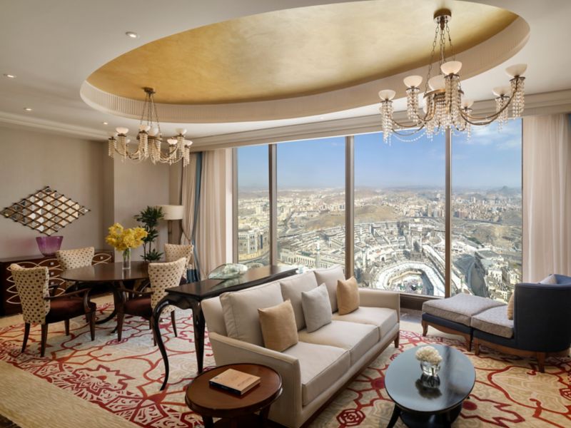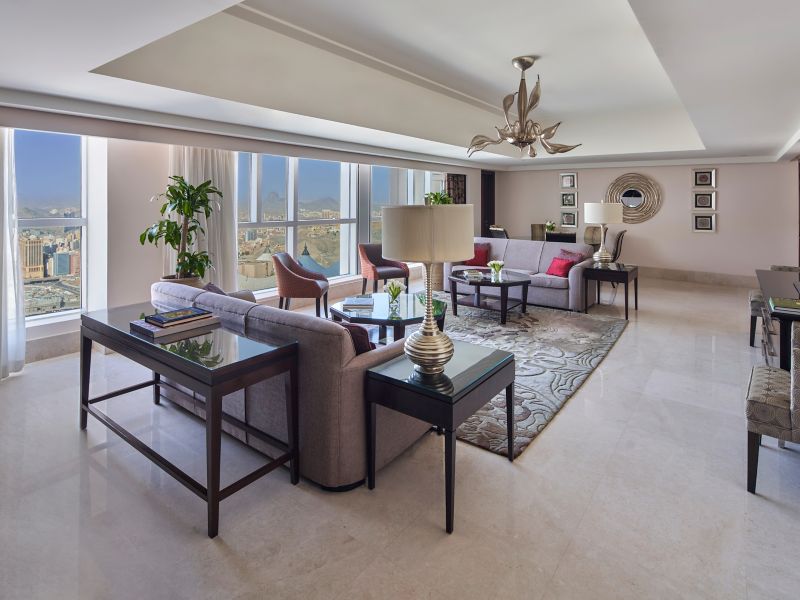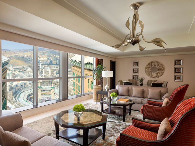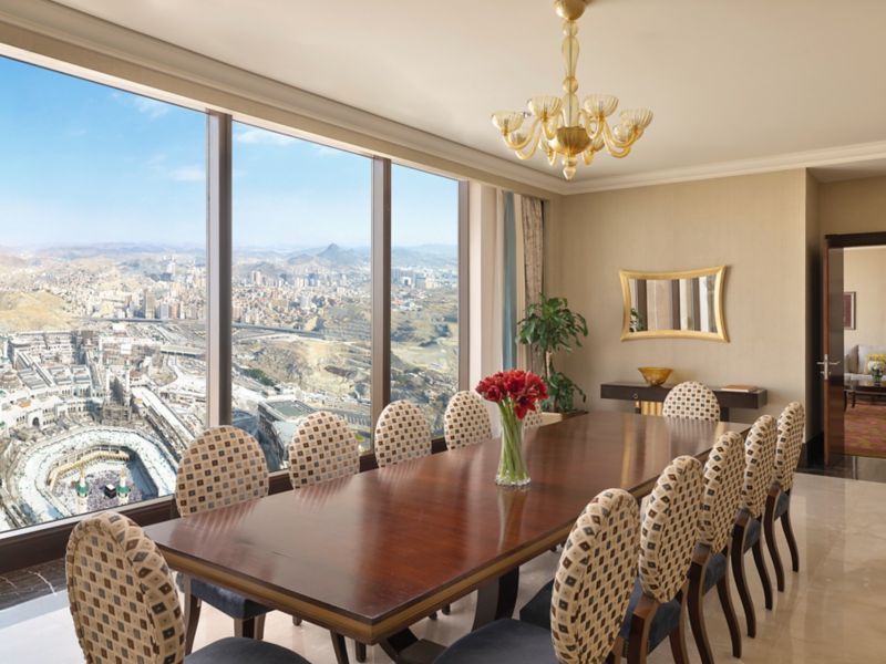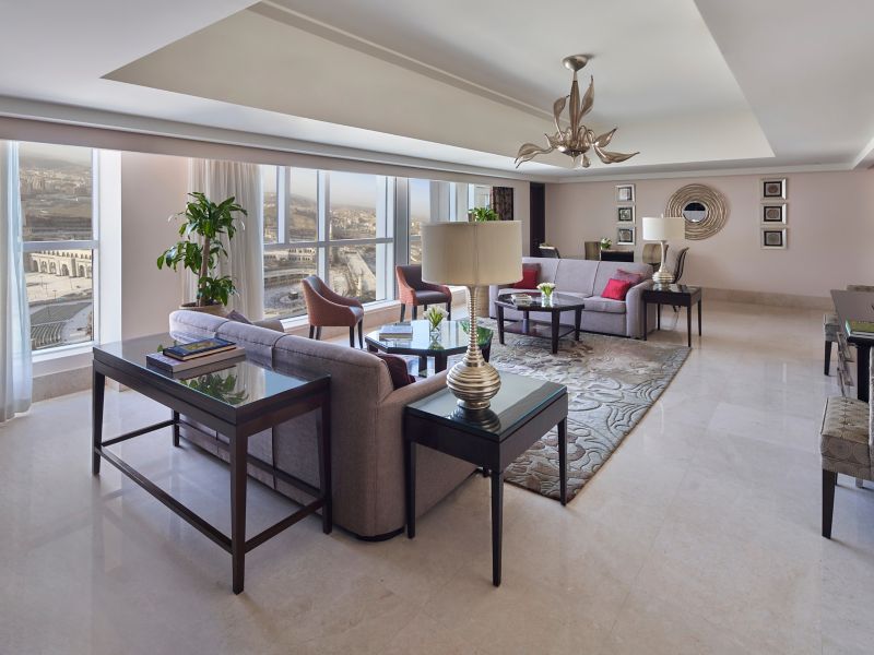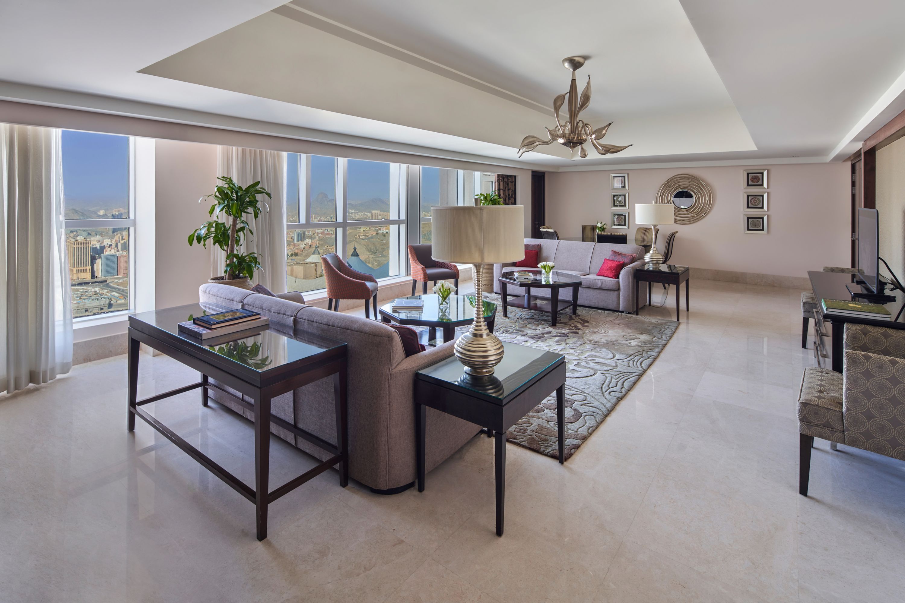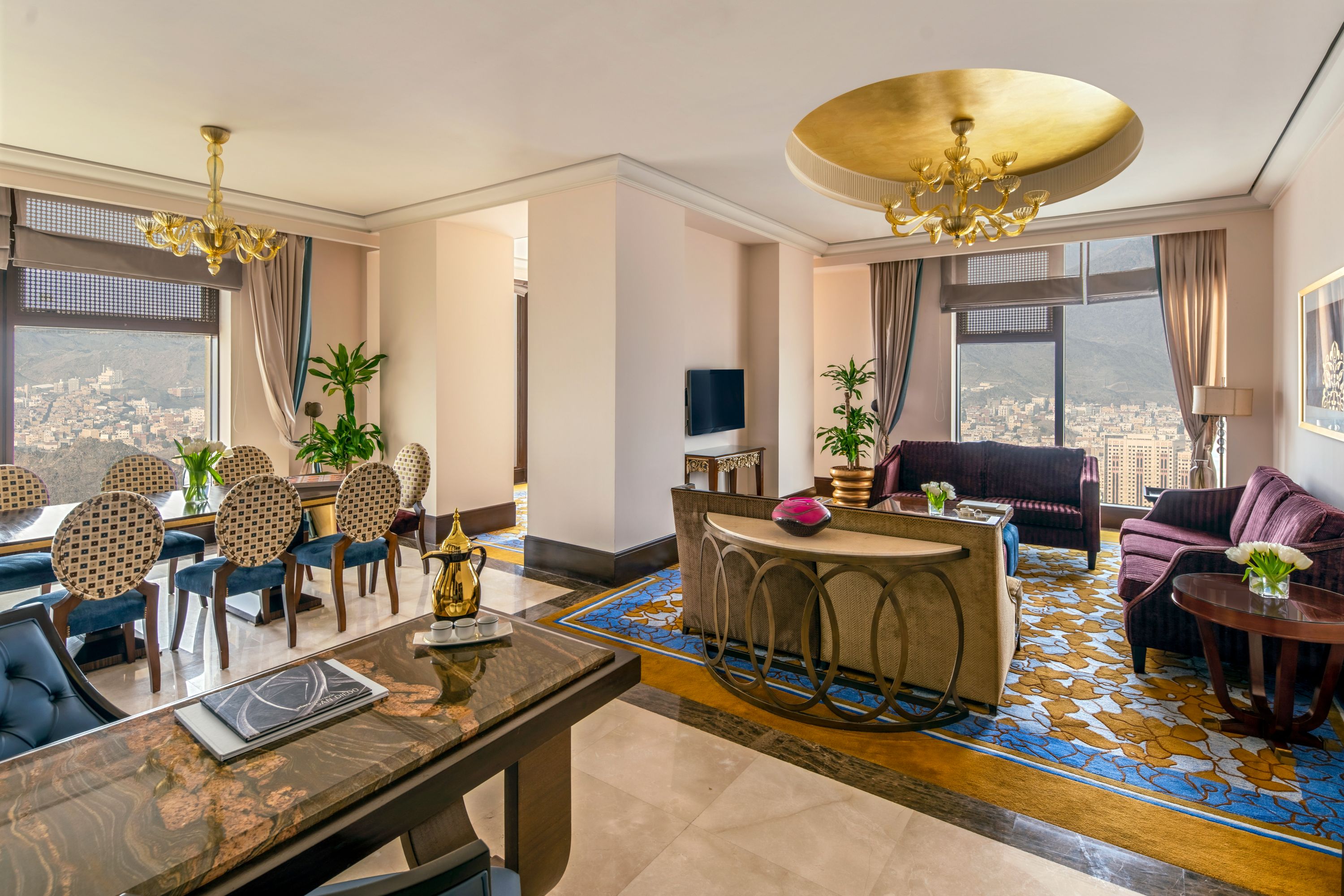 Presidential Suite Kaaba 150 m², Room with king size bed, Separated living and dining room, office area and prayer area, Equipped kitchenette, 1 Full Bath, 1 Guest toilet, In Suite Speakers for Haram Audio, Internet Access. Luxurious space and ideal .