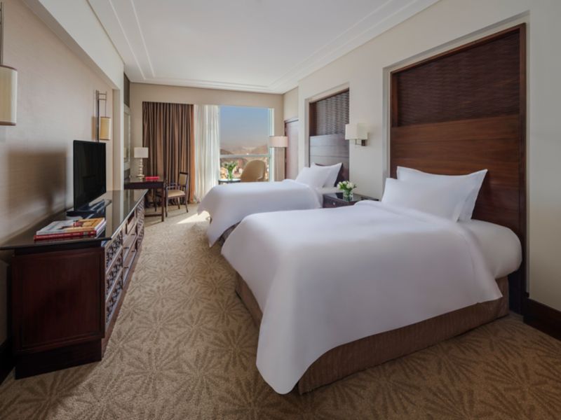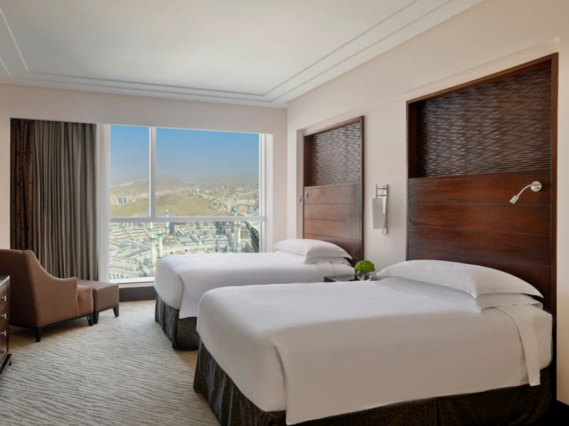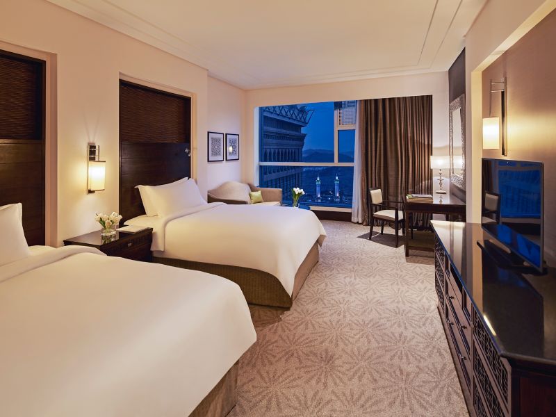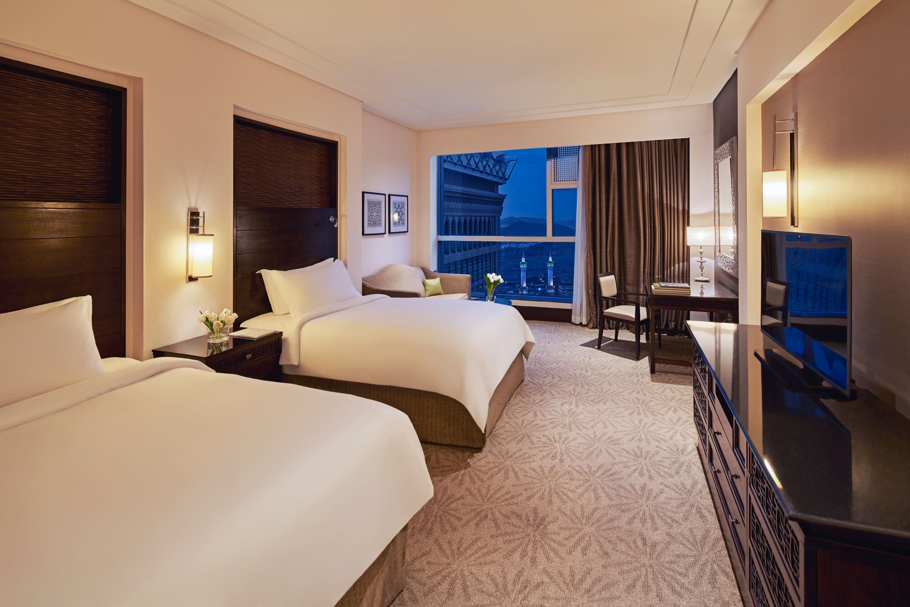 Fairmont Gold Twin Haram 42m², Room with Twin Bed, Full Bath, 32" LCD/ TV, Coffee / Tea Refreshment Center, In-room Speakers for Haram Audio, Non-Smoking. Elegant and comfortable, offering a serene experience with stunning views and exceptional service.