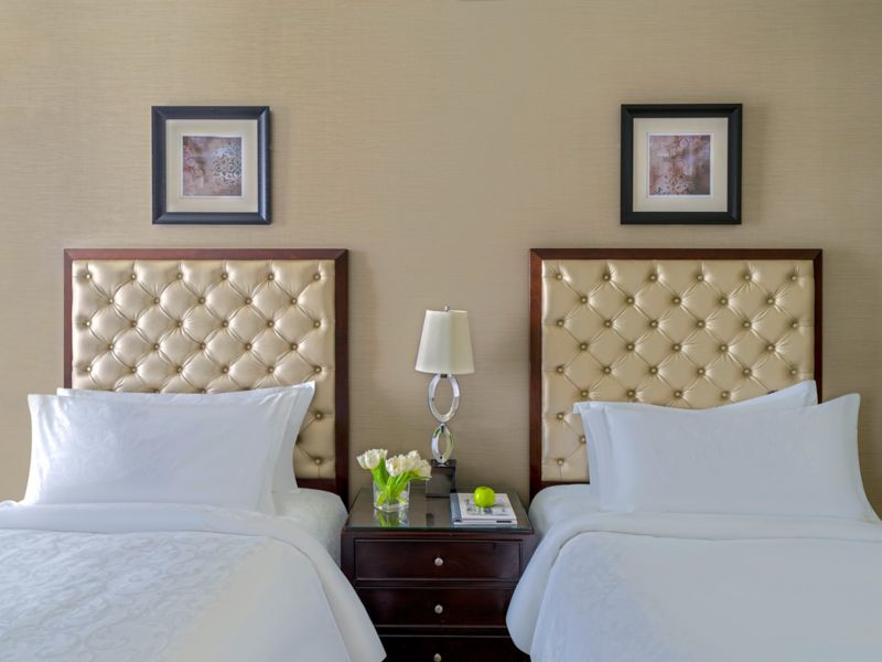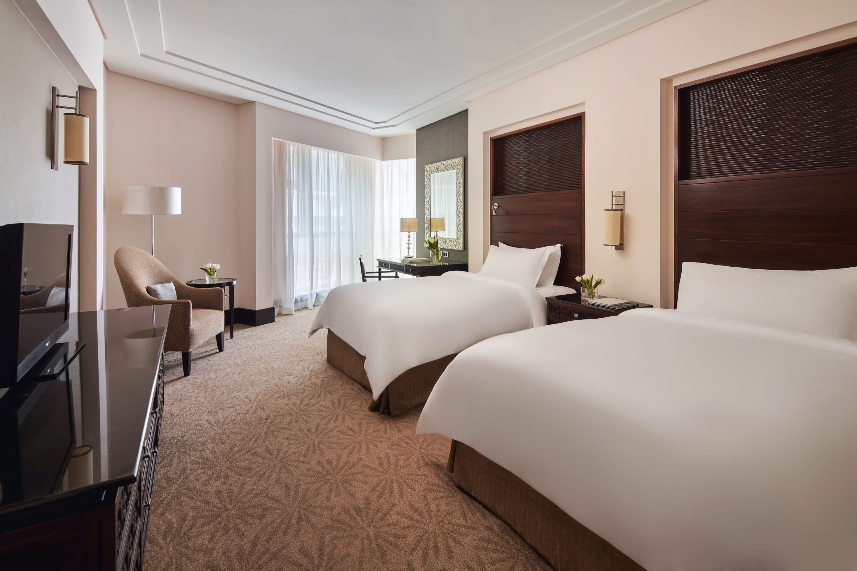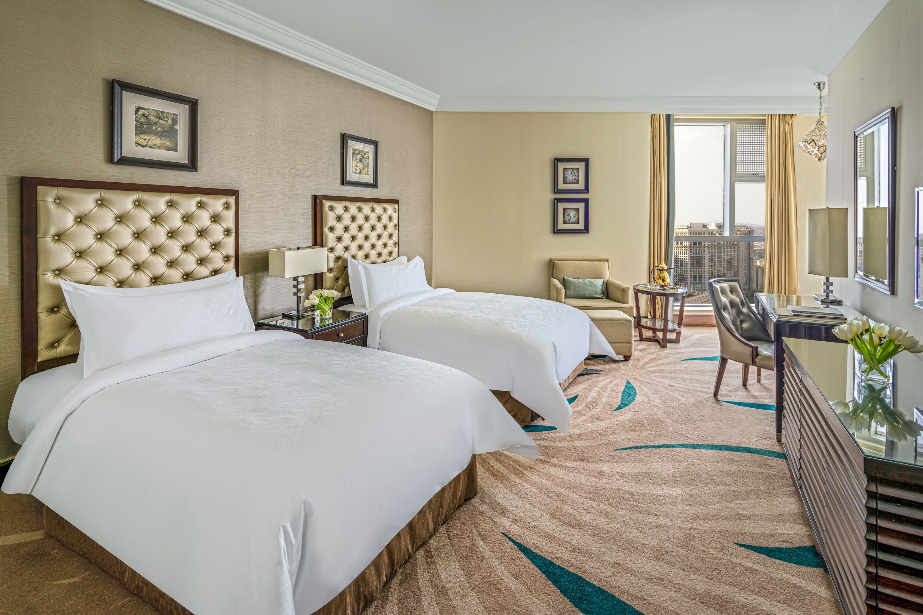 Fairmont Room Twin City 42m², Room with Twin Bed, Full Bath, 32" LCD/TV, Coffee/Tea Refreshment Center, In-room Speakers for Haram Audio, Non-Smoking. Luxurious amenities and exceptional comfort ensure a memorable stay. Perfect for relaxation and comfort.