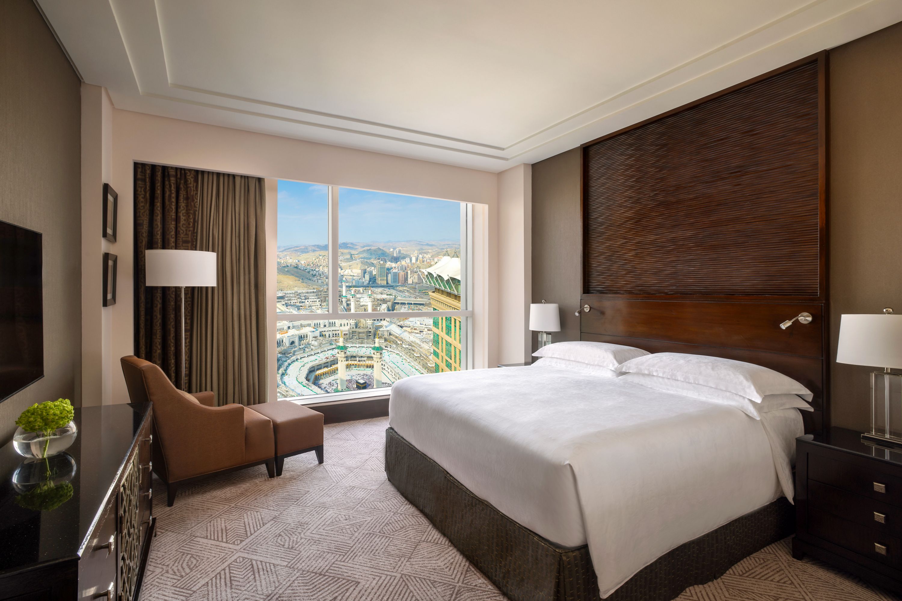 Junior Suite King Kaaba 92m², Room with King size bed, Living Room, One Sofa Bed, 1 Full Bath, 1 Guest toilet, In-suite Mini-bar, In-suite Speakers for Haram Audio, Internet Access, Non-Smoking. Spacious, elegant, and perfect for comfort with outstanding