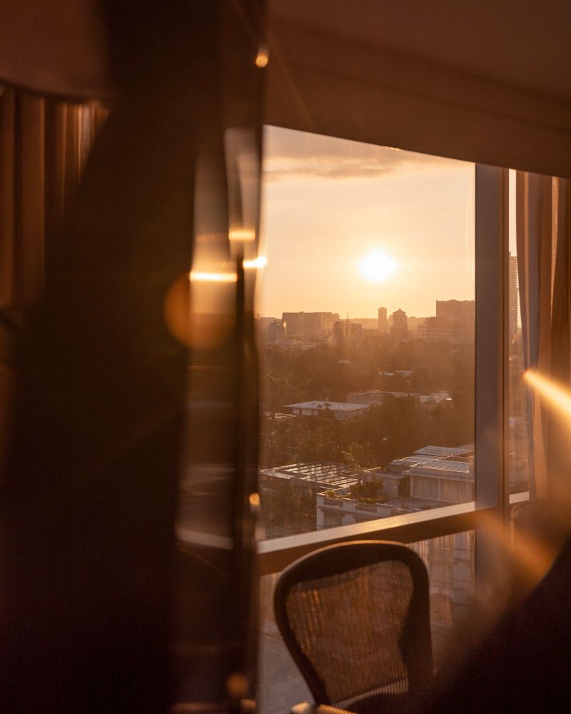 Bathed in natural light streaming through floor-to-ceiling windows, the Fairmont Room is a sophisticated retreat above the city. It features a luxurious king bed, contemporary design, and generous space to unwind, ideal for both business & leisure stays.