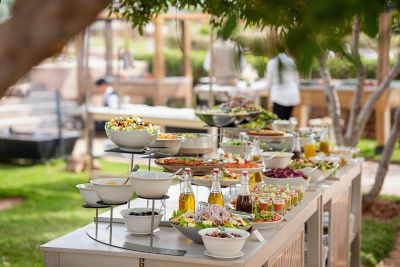 An open-air garden celebration featuring a live DJ, camel and poney rides, ideal for families.