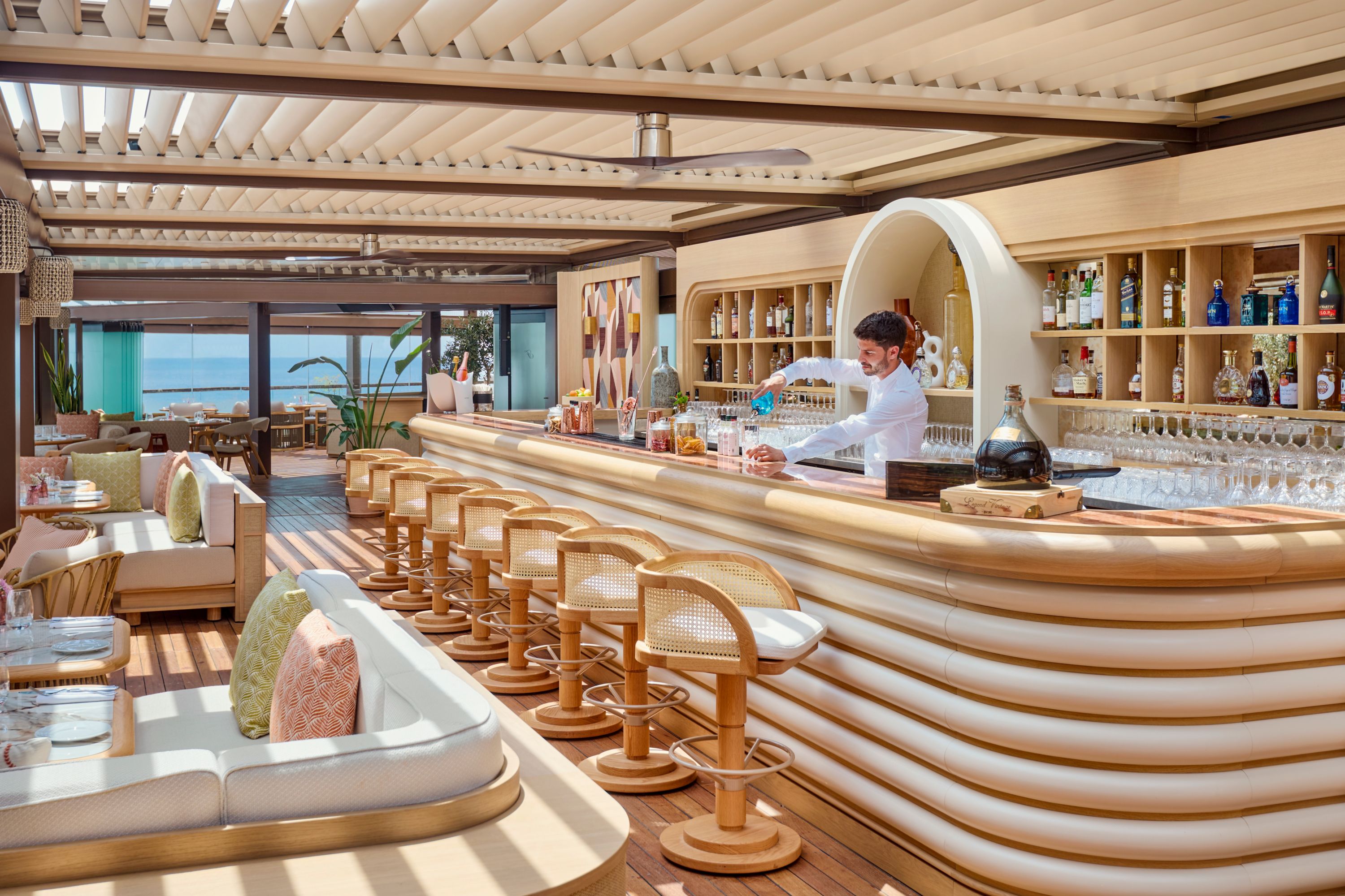 Located on high floors, this room offers connected technologies, blue and beige color design. Perfect to enjoy a breathtaking view of the Mediteranean Sea on the private terrace. Connected TV, coffee machine and digital technologies available. 35sqm.