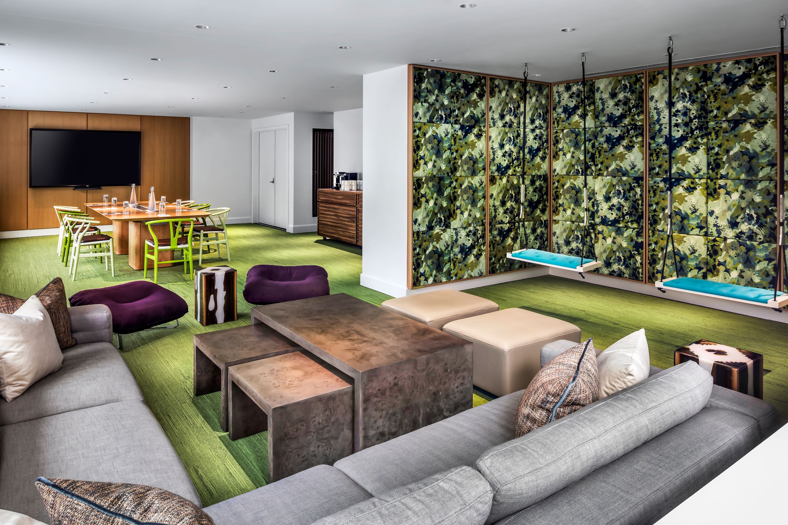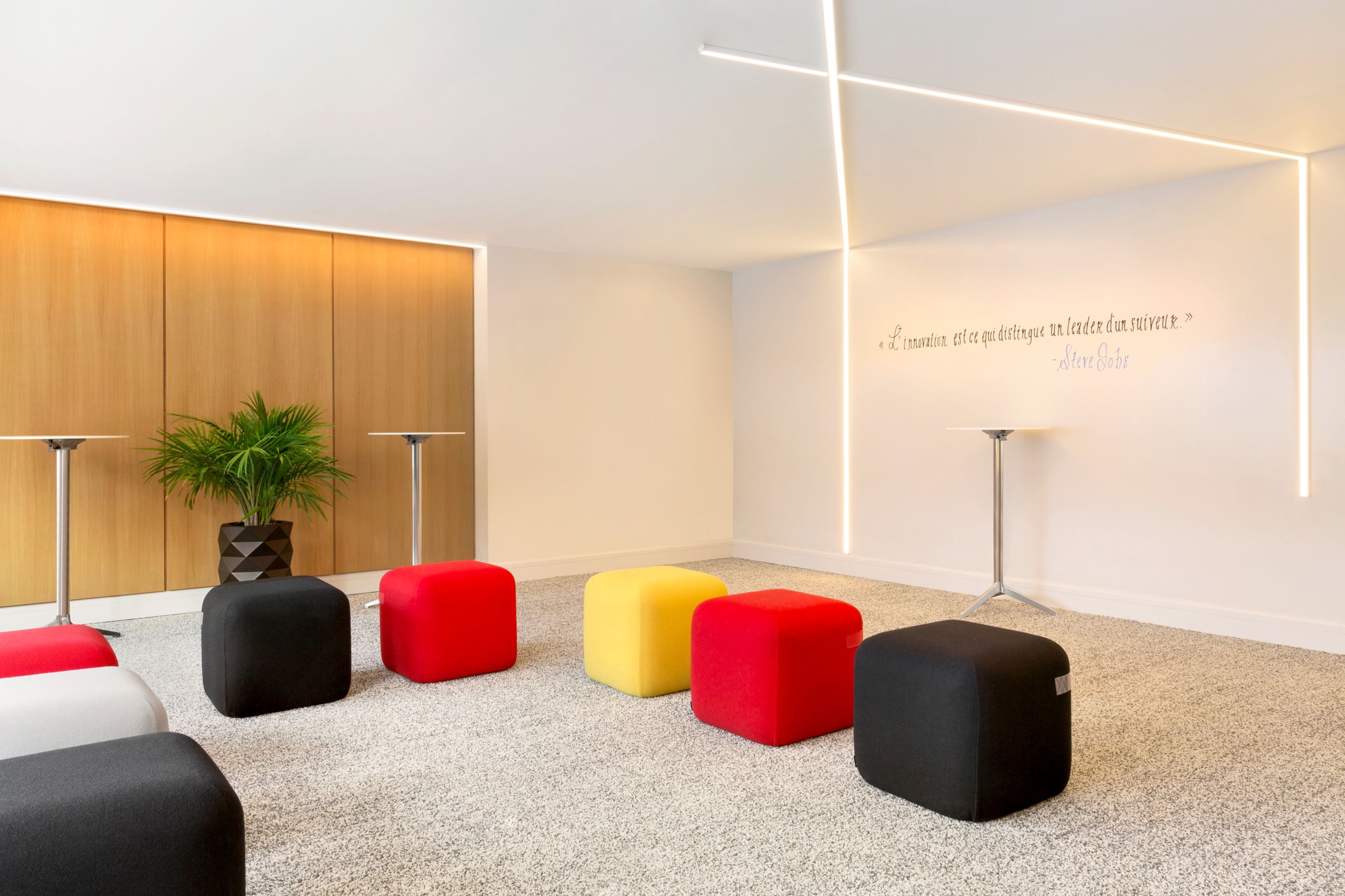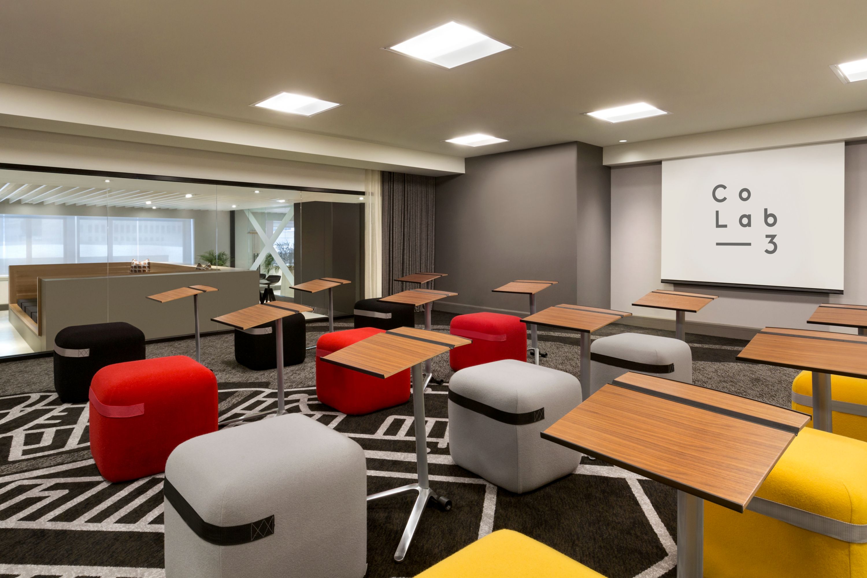 Coller is a twin room to Copier. They each accommodate up to 15 guests. Both feature dry-erase walls, a wall of stick-on sheets, colourful poufs, and abundant natural light—perfect for brainstorming sessions and dynamic meetings.