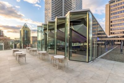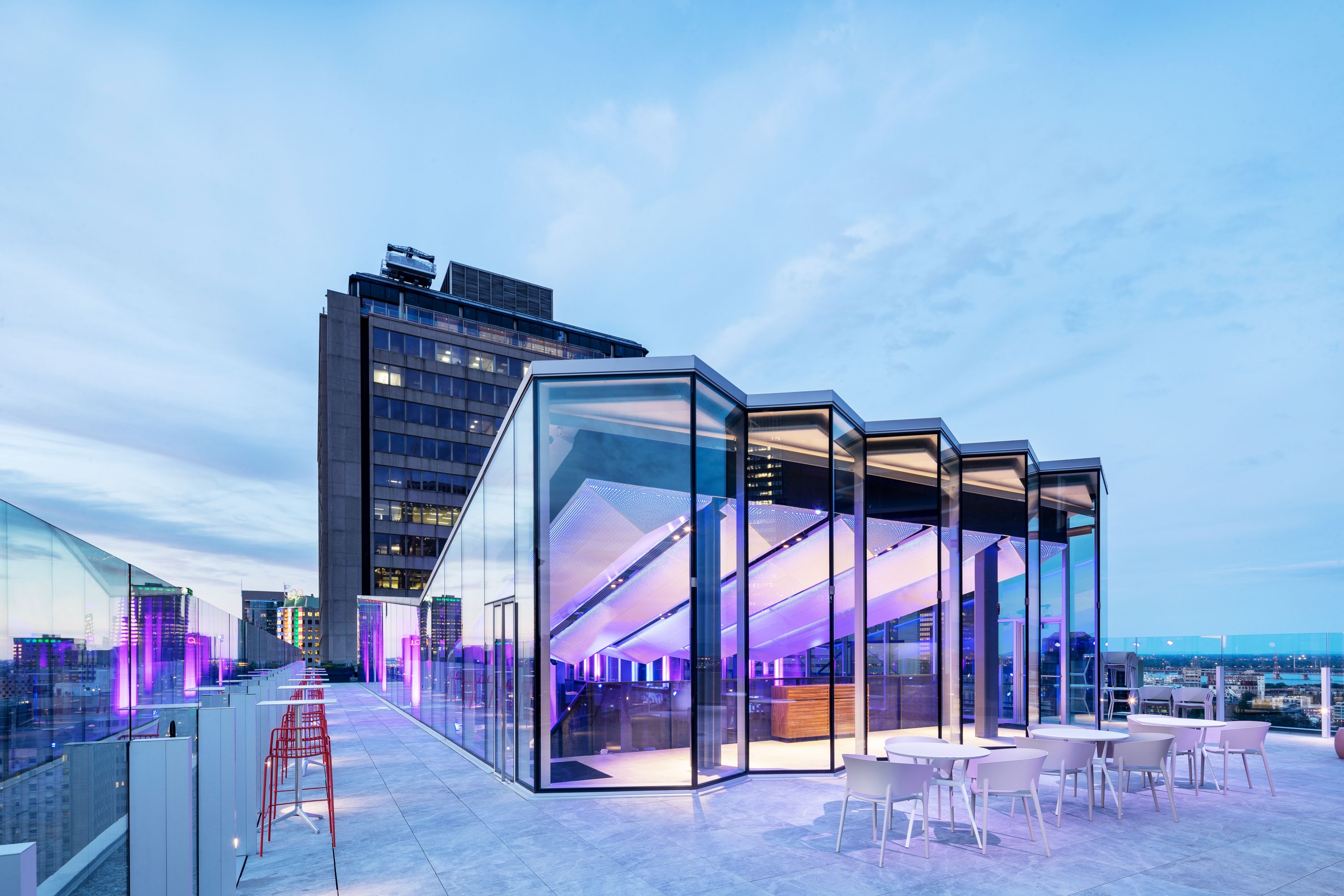 As the culminating point of our business hub, Espace 21 has all it takes to revolutionize the city’s urban scenery. Located on the 21st floor of Fairmont The Queen Elizabeth, its modern and innovative glass structure opens up to a terrace with a breathtaking view.