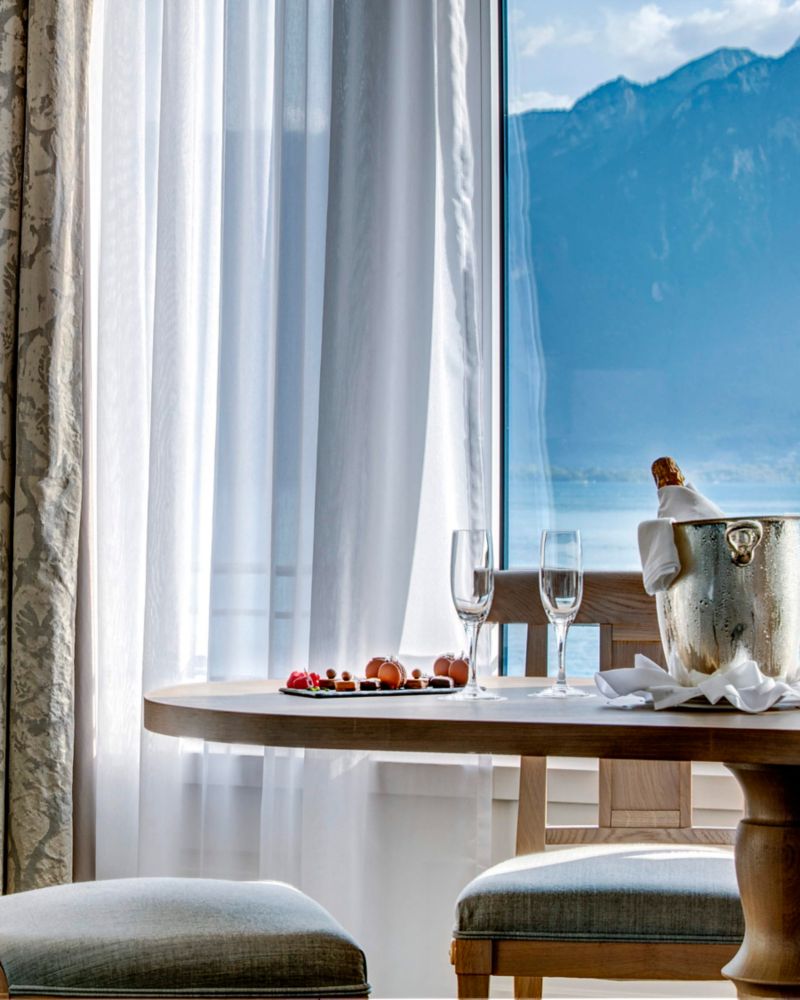Spacious with their bedroom and separate living room, The Signature Lake View Suites offer an elegant and contemporary design. They offer one King or Twin bed, and stunning views on Lake Geneva and the Alps, plus luxury amenities for your comfort.