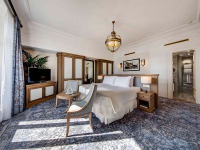 The Bellevue Suites at Fairmont Le Montreux Palace blend Belle Epoque elegance with modern comfort. Enjoy a king-size bed, a marble bathroom, and a living room with large sofas and a chessboard table. Admire unobstructed views of Lake Geneva and the Alps. With 76 sq.m. of space, the suite can be connected to a twin bedroom, expanding to 110 sq.m.