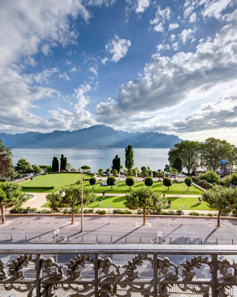 The Junior Lake View Suite is a luxurious open-concept room with an elegant design, where you can admire the amazing view on Lake Geneva and the Alps from the large balcony, offering a King or Twin bed, a sofa bed, and luxury amenities.