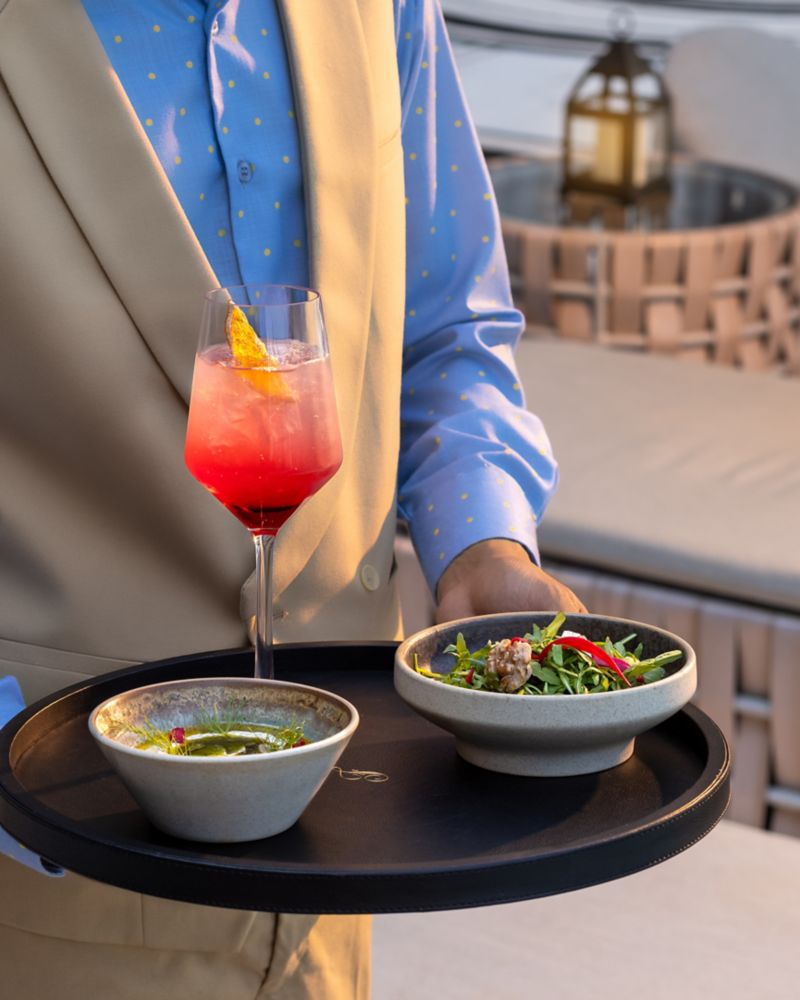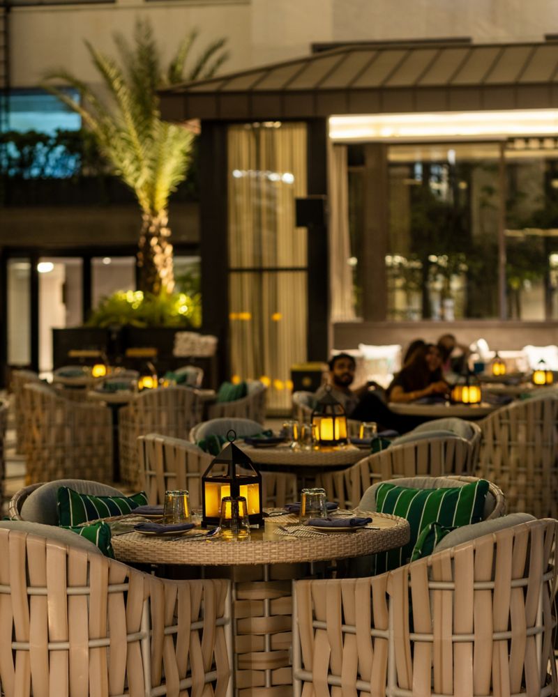 Inspired by the breezy elegance of St. Tropez and the tranquillity of the Amalfi Coast, Samaa is an enchanting escape framed by lush palms and stone-clad walls. As evening unfolds, it transforms into a lantern-lit haven where Mediterranean flavours intertwine with local heritage—succulent Turkish kebabs, delicate mezze, and indulgent desserts. With plush lounge seating and artfully crafted cocktails, Samaa invites you to revel in the magic of golden-hour whispers and starlit celebrations.