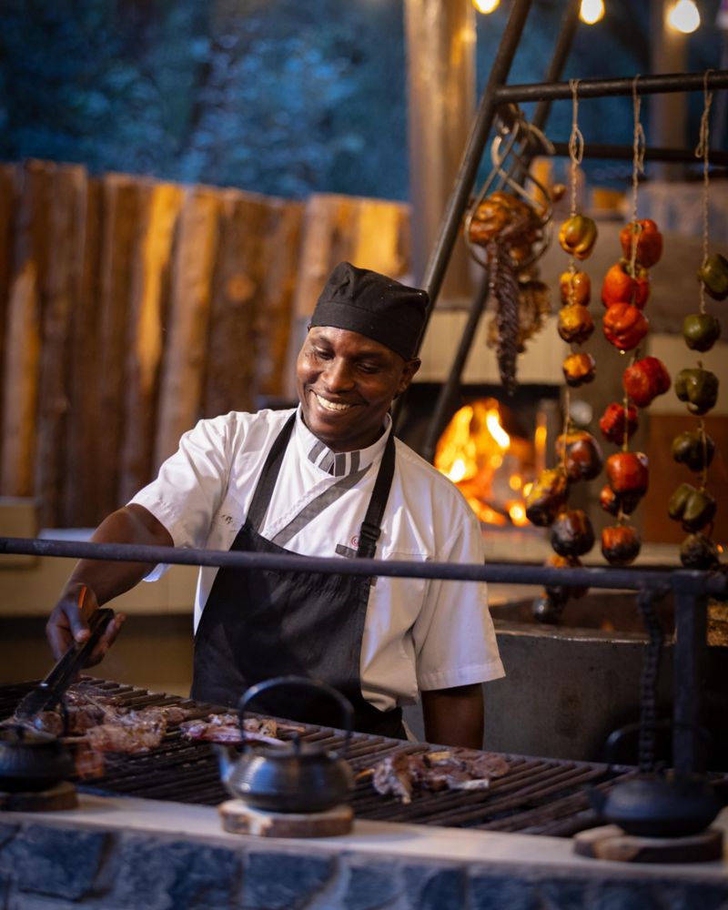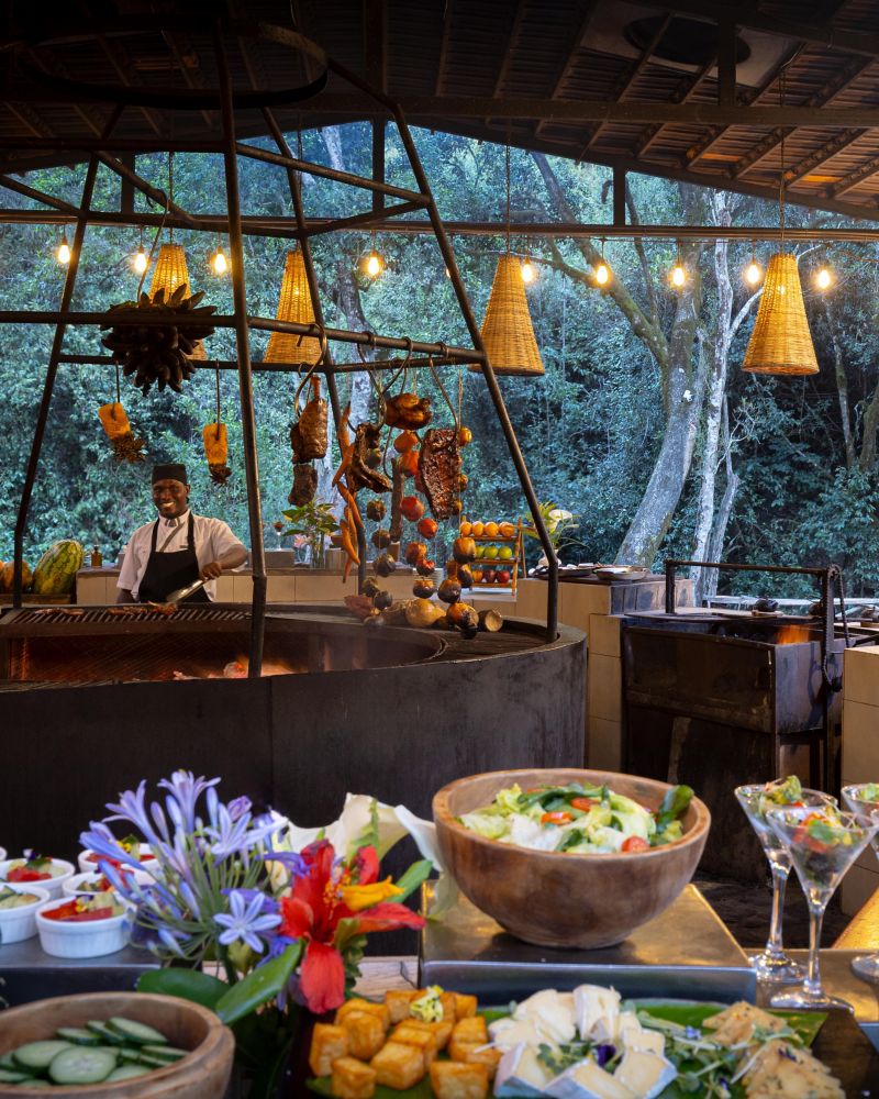 As the sun sets behind Mount Kenya, gather under the stars for an unforgettable Open Fire Dinner overlooking the banks of River Likii. Set in a secluded outdoor space, this evening feast is prepared over glowing coals and open flames, creating rich, smoky flavors and a warm, rustic ambiance. Savor locally inspired dishes made with organic ingredients, complemented by fine wines and flickering firelight. With crackling flames, starry skies, and the soothing sounds of the river and surrounding forest, it’s an intimate, sensory dining journey that captures the spirit of the wild.
