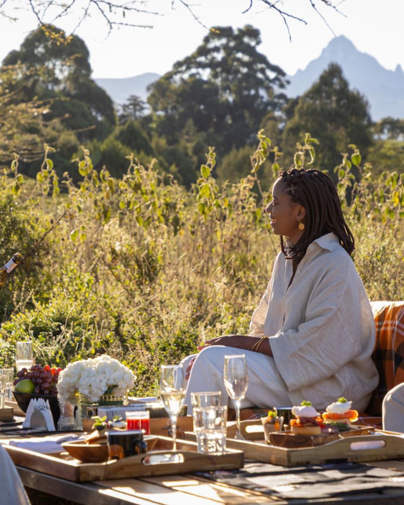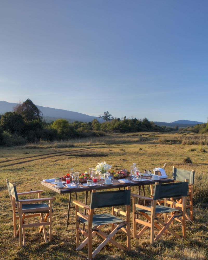 Wake up to breathtaking views and fresh mountain air with a breakfast laid out on the rolling slopes of Mount Kenya. Featuring hearty selections and warm beverages, this is a perfect way to connect with nature at daybreak.
