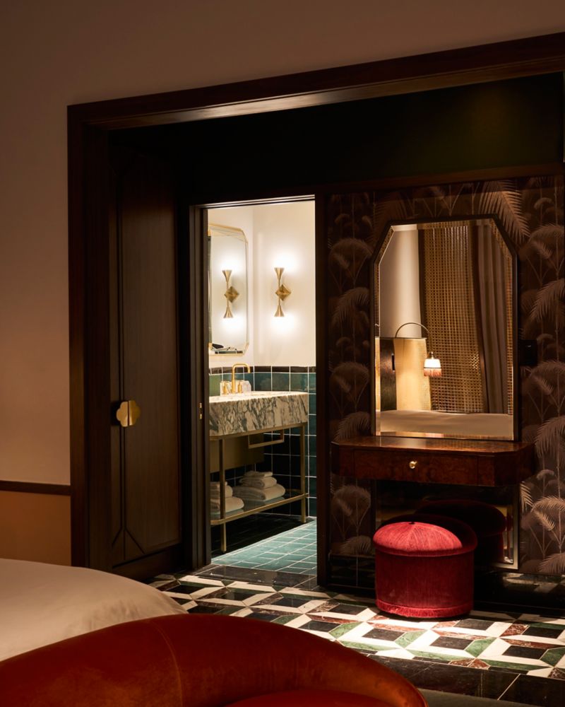 Enjoy a refined guestroom with city views. Sunroom-inspired sitting area and marble entry. Bathroom with double vanity and rain shower with adjustable arm, plus Nespresso, tea kettle, minibar, and hearing accessible features.