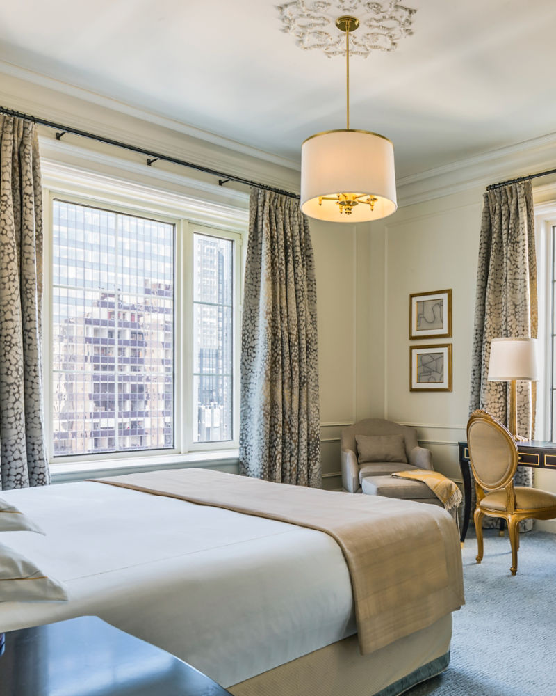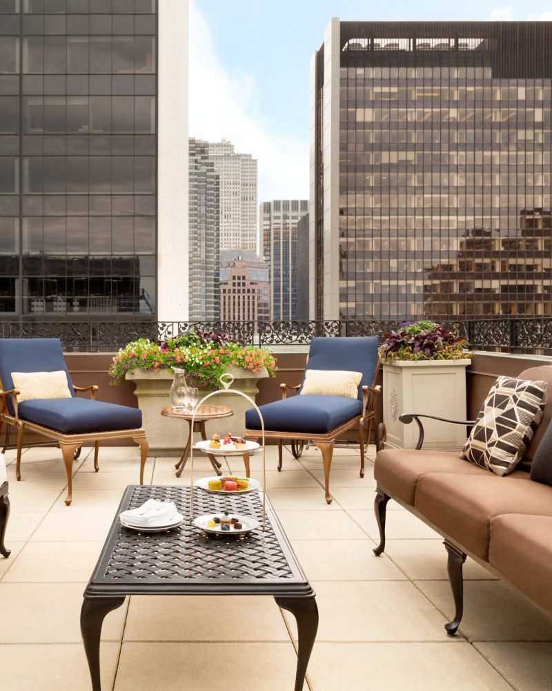 The immense Grand Penthouse Two Bedroom Terrace Suite is located on the penthouse level of The Plaza and offers breath-taking views of Central Park and the New York City skyline. Each spacious bedroom comes with a King bed and a private terrace accompanies the primary bedroom. The sophisticated design is evocative of sophisticated Upper East Side residences while paying homage to the hotel's unique heritage.