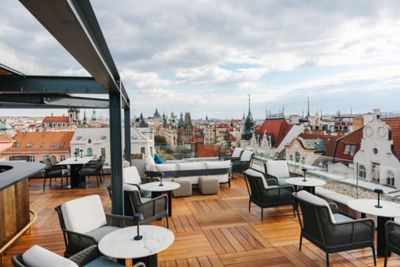 Let the evening carry you to the 9th floor, where The Rooftop Terrace is bathed in golden radiance. Gaze across the city’s treasures from iconic Pařížská Street and Faculty of Law to the rolling greens of Letná Park. Savor a view as captivating as it is unforgettable.