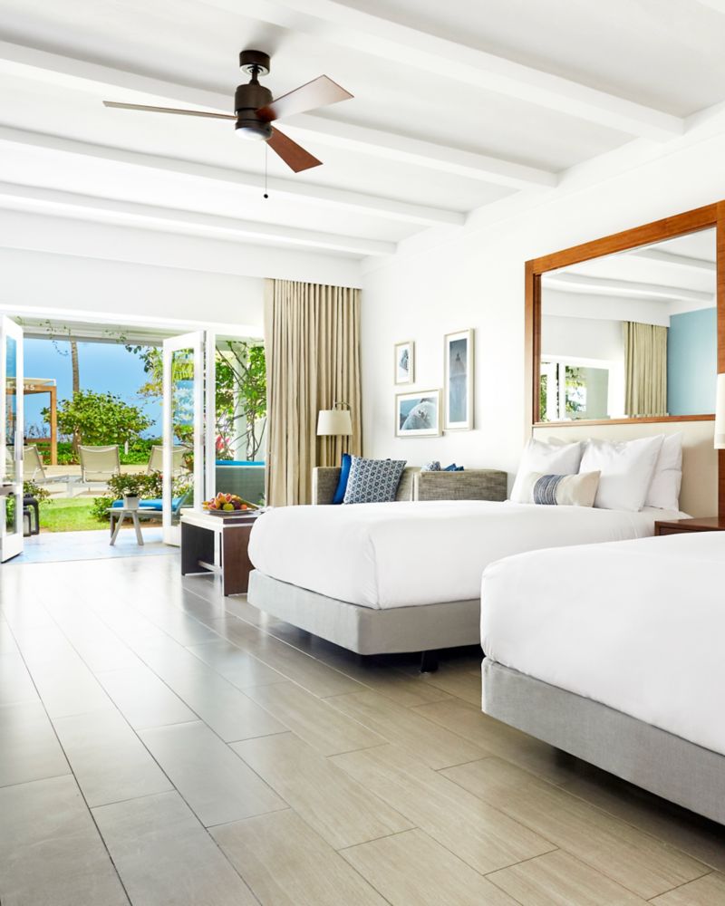 Discover a peaceful retreat in the Caribbean and escape to our San Juan paradise in a guestroom featuring two queen beds and a cozy sitting area.