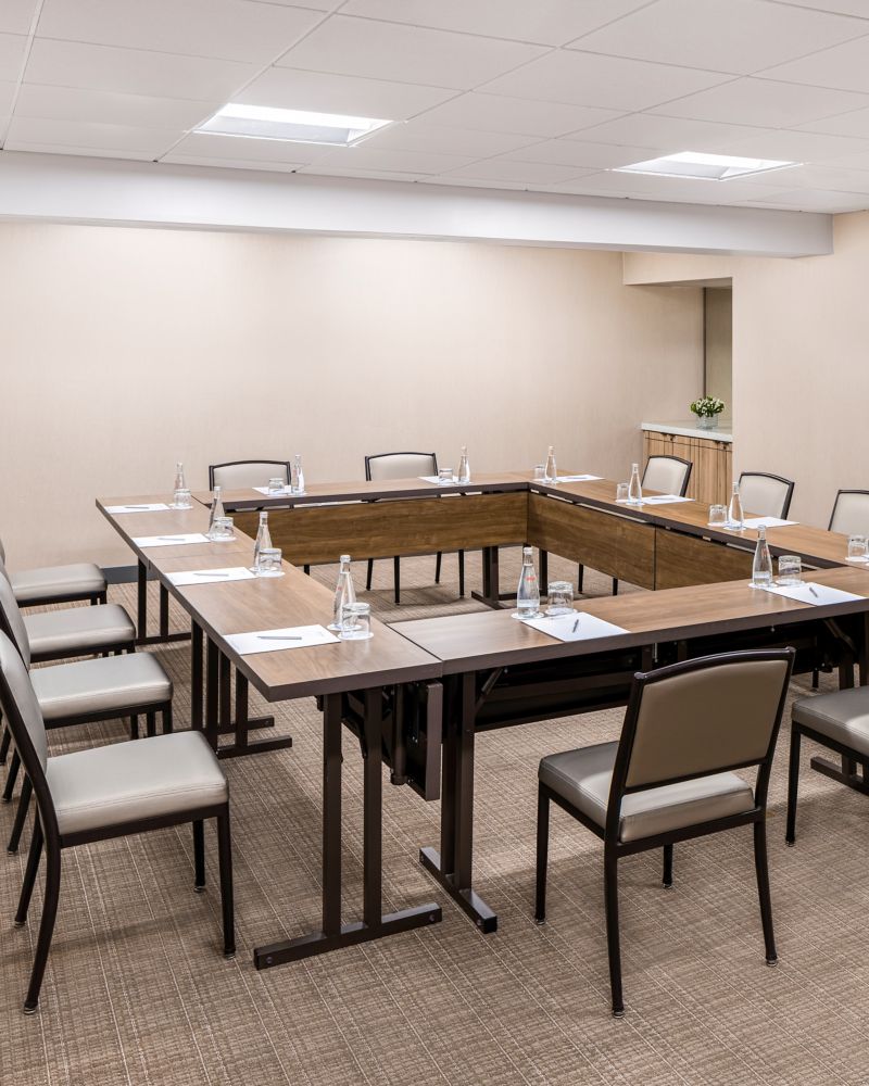 Ideal for small group meetings, the Davis Boardroom offers a comfortable, customizable setting for focused collaboration. With 396 sq. ft. of space, it can accommodate up to 30 guests.
