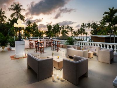 Captivating outdoor and sunset views are the protagonists of this terrace, ideal for a cocktail, gathering, or private event for up to 200 guests featuring marvelous views of the pools and ocean.