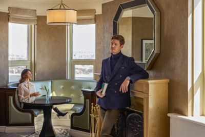 Premium suite on the top floor with private access. Roosevelt-inspired decor, large bedroom, living room and dining room. Luxurious marble shower, Views of Old Quebec. Includes butler service.