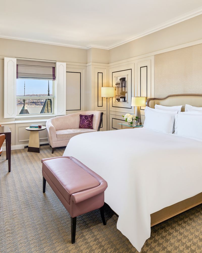 Unique Chateau architectural details, city or river view, luxurious sleep experience