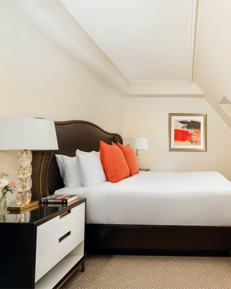 Unique Chateau architectural details, city or river view, luxurious sleep experience
