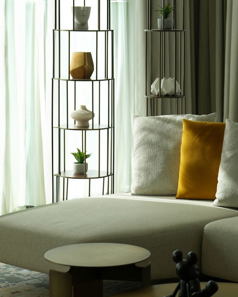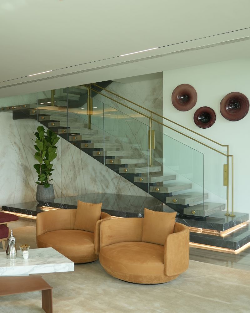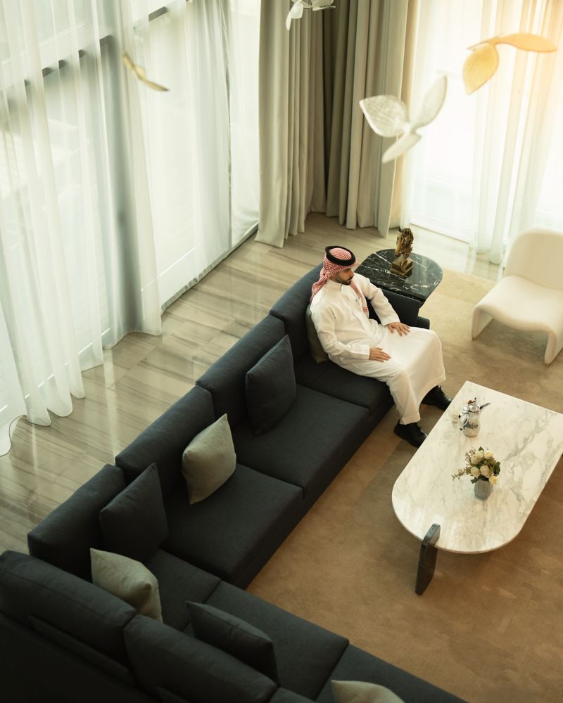 Located on the highest floors, the 718 sqm Royal Penthouse features lavish interiors, 4 master bedrooms, a sumptuous living area, a home theater, 5 bathrooms, luxury office, fully equipped kitchen and maid room. It includes a Jacuzzi and private gym.