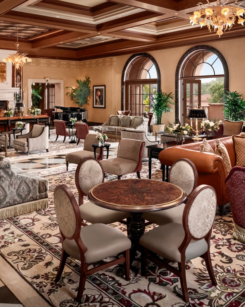 The Lobby Lounge at Fairmont Grand Del Mar blends the opulence of Italian palazzos with the natural beauty of Los Peñasquitos Canyon Preserve. Savor afternoon tea as the San Diego sun streams through arched windows, or stay into the evening to enjoy inspired tapas, handcrafted cocktails, and sophisticated entertainment beneath the warm glow of Venetian glass chandeliers.