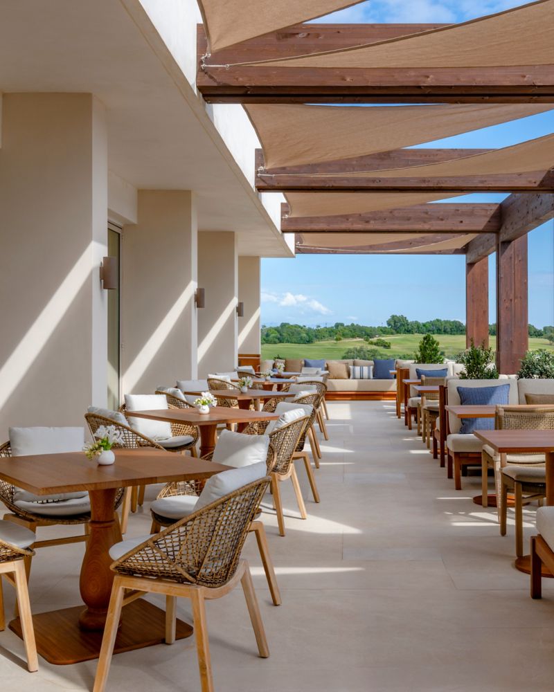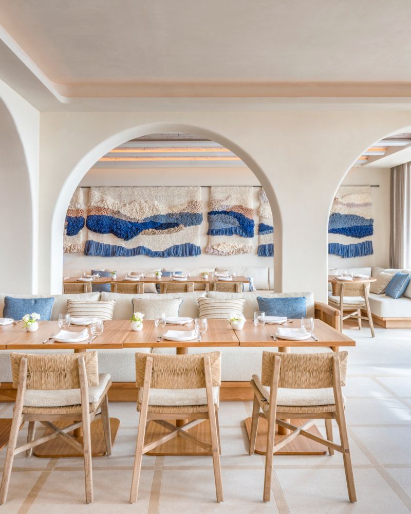 The poolside venue offers Mediterranean cuisine under the Andalusian sun. Featuring fresh seafood, vibrant flavors, cane reed ceilings, and curated music, it provides a laid-back yet refined dining experience, perfect for relaxation.