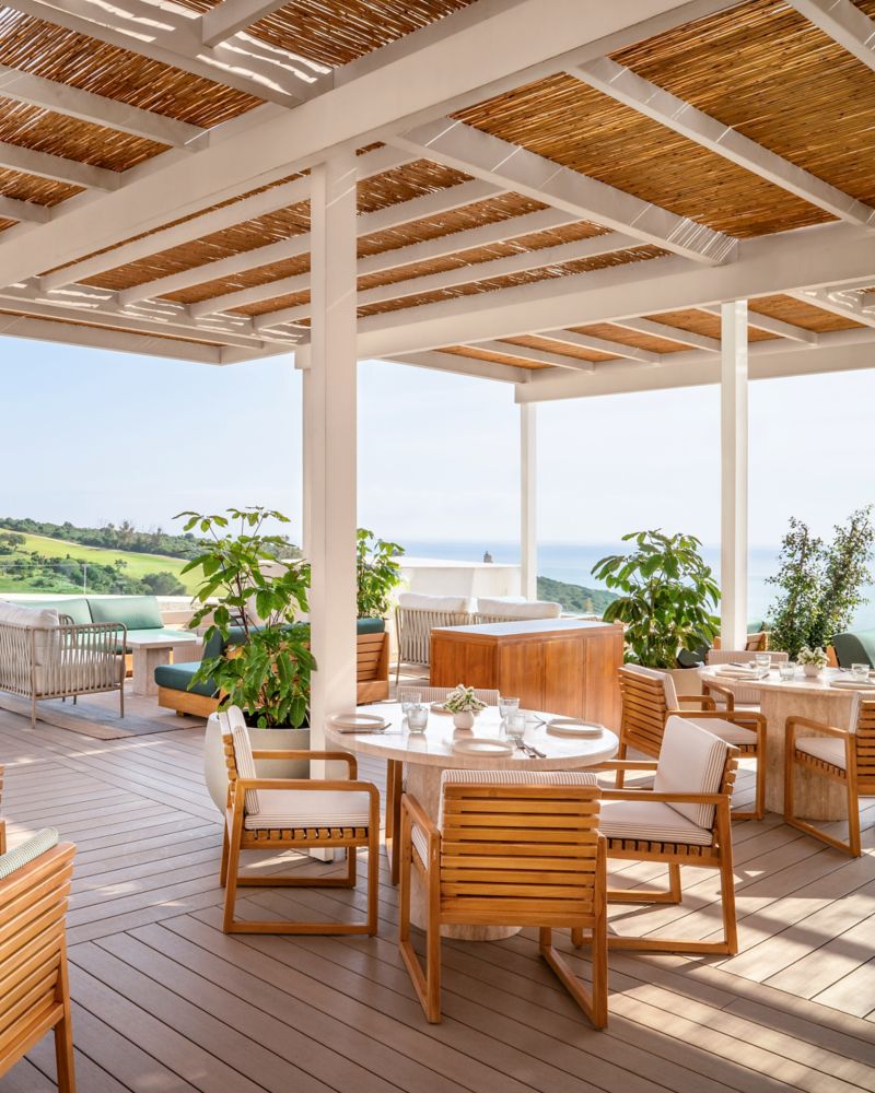 Under the sun-dappled shade of bamboo ceilings and surrounding lush greenery, the open-air haven of Umbra redefines coastal Mediterranean dining. Local, simply cooked ingredients shine in dishes like Cádiz tuna and fire-roasted espeto (skewered sardines), paired with fresh, seasonal salads. Handcrafted tableware reflects the region’s natural resources, and carefully curated music flows with the mood, creating an effortlessly sophisticated setting for dreamy days by the pool.