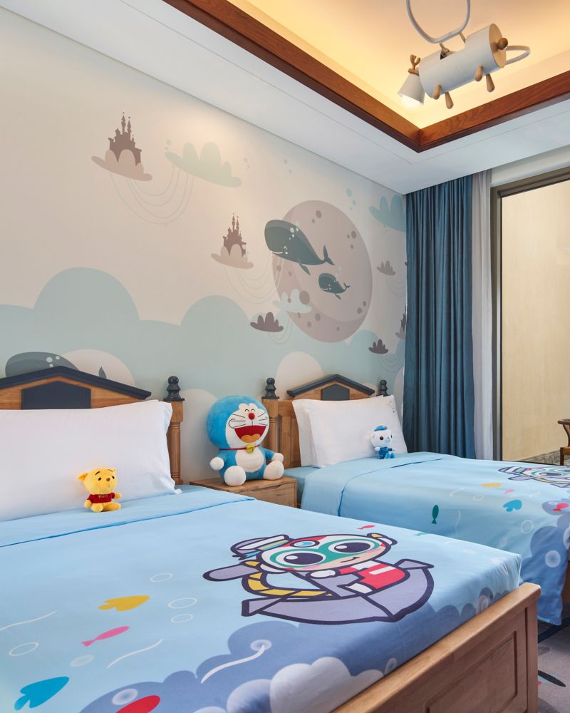 65sqm room on Levels 3 to 5, with rainshower and bathtub, minibar, private safe, traditional Chinese woodcarving, 55" LCD TV, free WIFI, floor to ceiling windows, and private balcony. (Extra bed available upon request.)