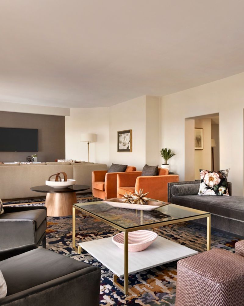 Lounge access with breakfast. Private bedroom, separate parlor, patio or balcony, sofa bed, bathtub, oversized shower, dual vanities, Nespresso maker.