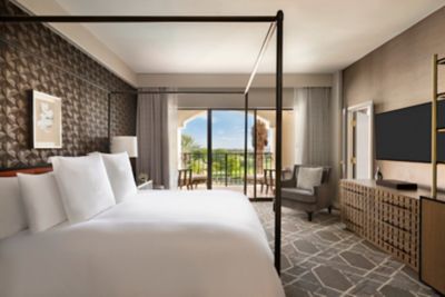 Balcony with golf course views. Oversized shower, dual vanities, Nespresso maker, refreshment bar, mini-fridge, steamer. Located on floors 2-4.