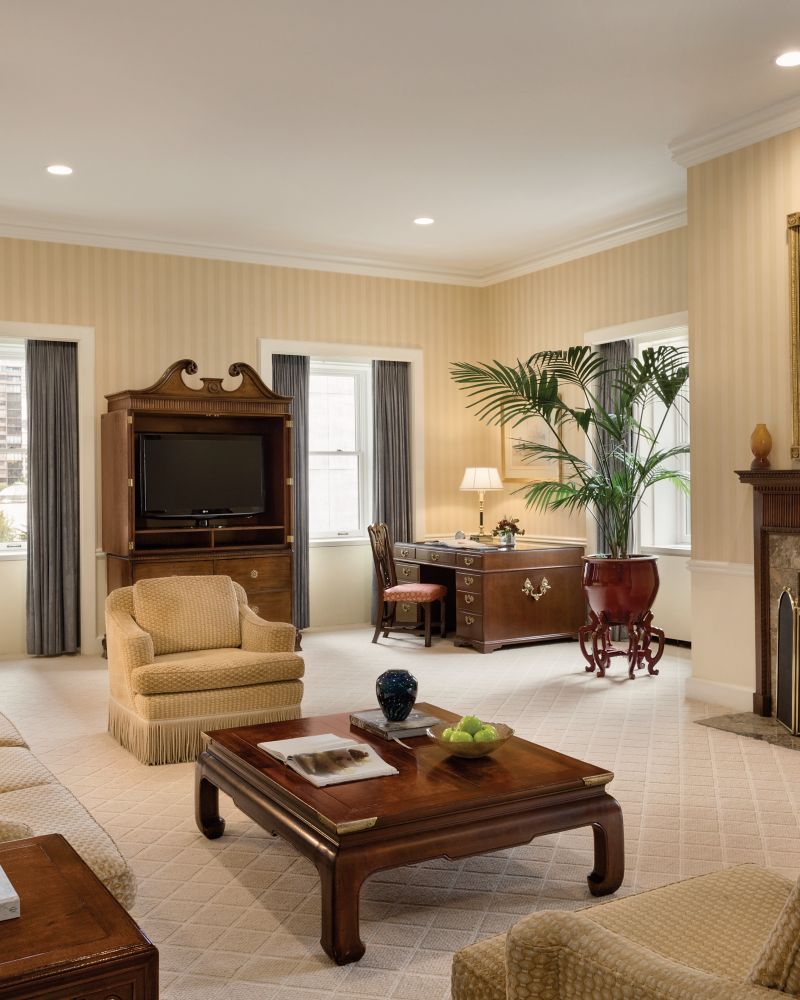 CHECK RATES SEE DETAILSThis iconic high-floor suite offers city luxury, abundant natural light, a grand piano, study, fireplace, catering kitchen, dining for 12, and a open living room. Features a king bedroom with the option to connect a second—perfect for celebrating.