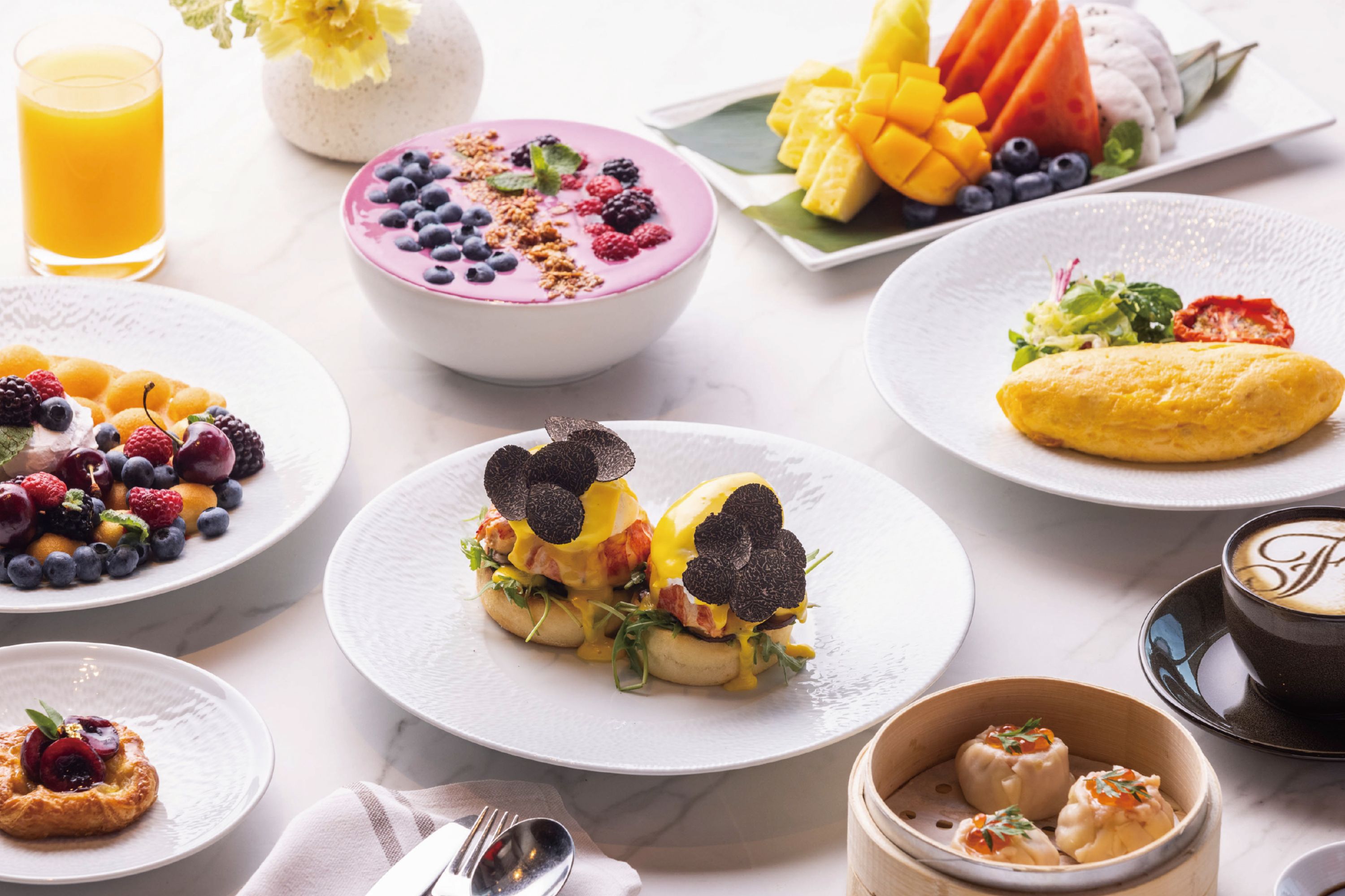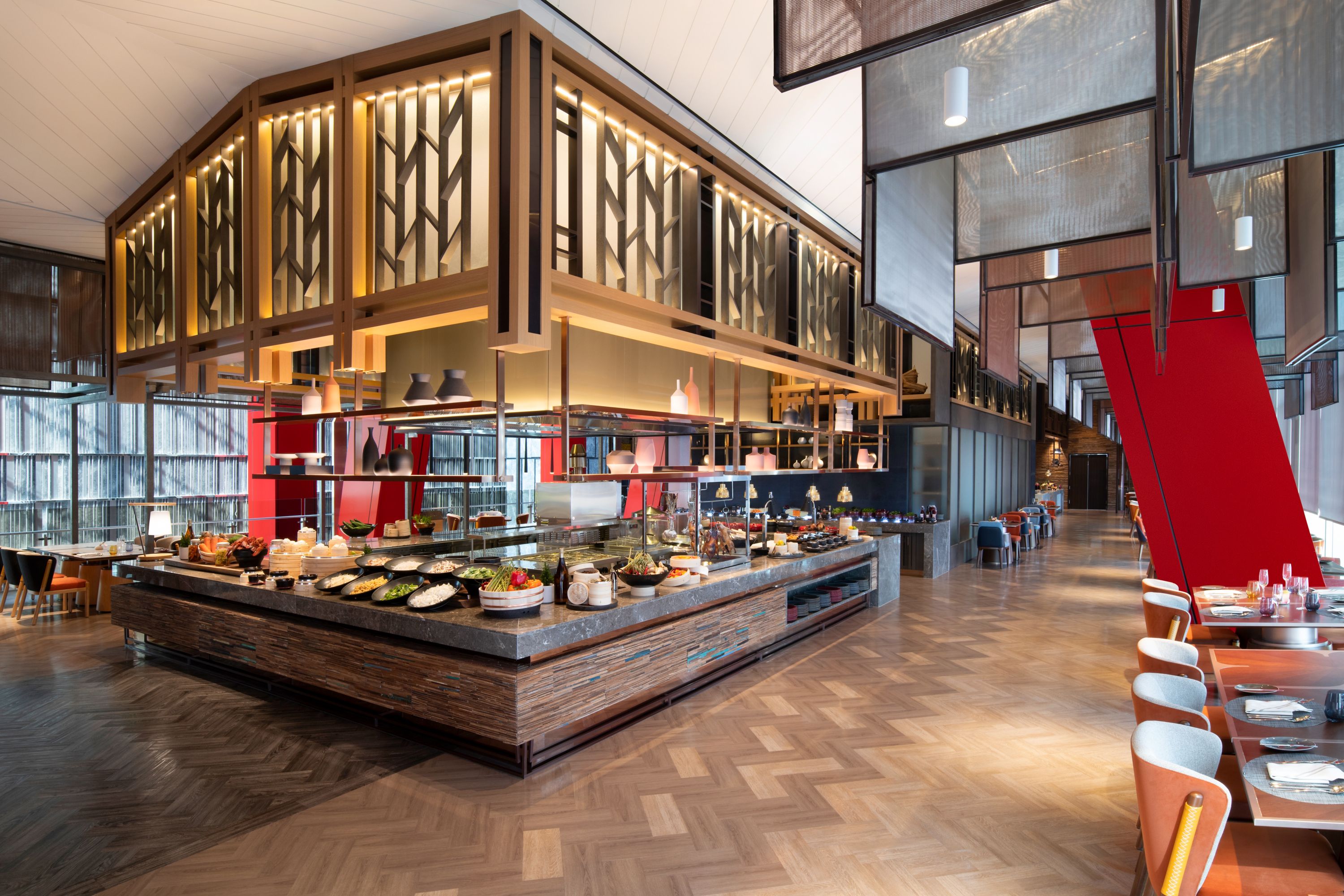 Located on the 5th floor, Spectrum is an all-day dining venue offering Eastern and Western cuisine. Its high ceilings create a spacious ambiance, while twin open kitchens immerse diners in the culinary experience.