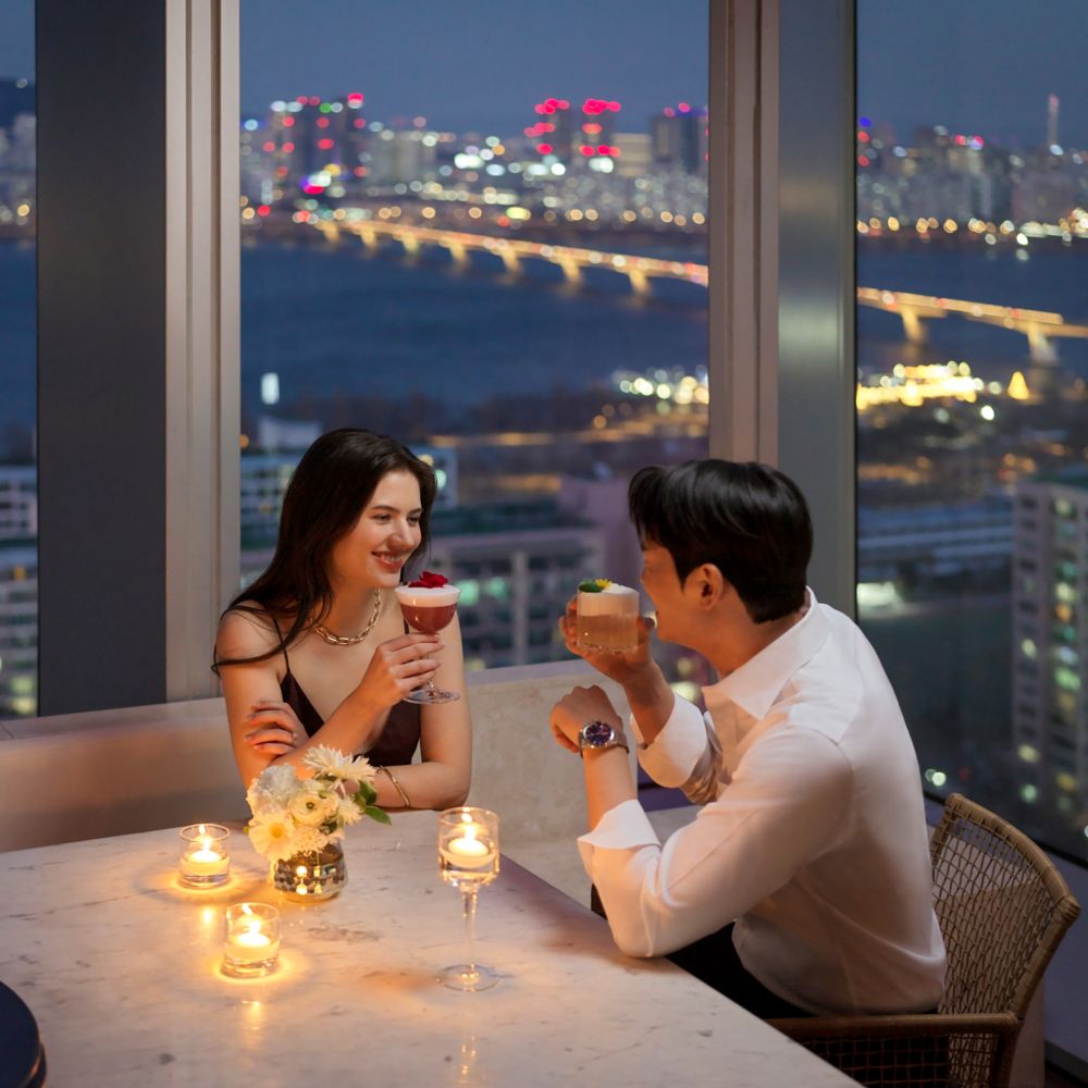 M29, perched on the 29th floor, is a rooftop bar with stunning views of the Han River and Yeouido skyline. Guests can enjoy trend-inspired bespoke cocktails crafted by expert mixologists, paired with light dishes. Dress code: Business casual.