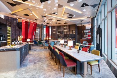 Premier suite comprising two bedrooms, two bathrooms, and a living room with a sofa and three-seat dining table. Access to Gold Lounge, serving daily breakfast, afternoon tea. (The room images may differ from the actual assigned view.)