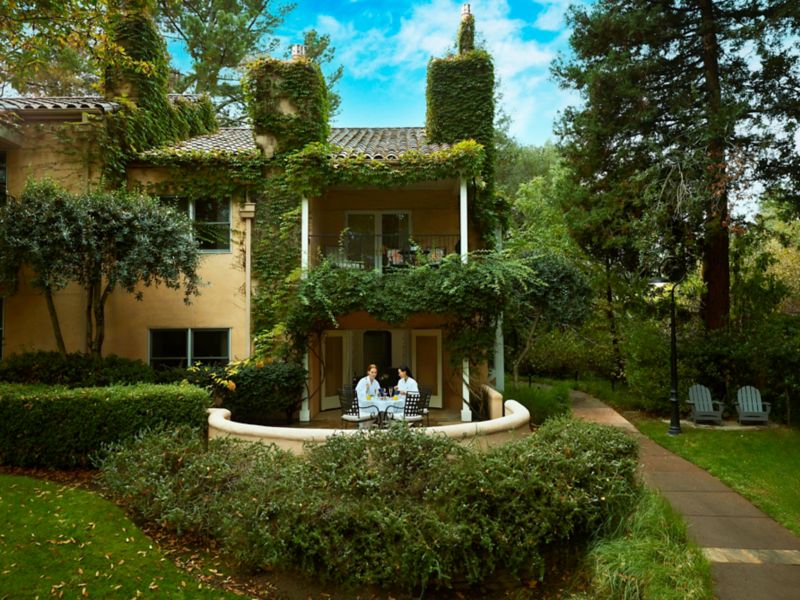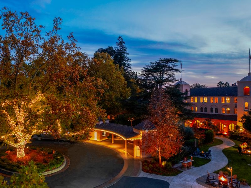 Front lawn of Fairmont Sonoma Mission Inn & Spa at sundown