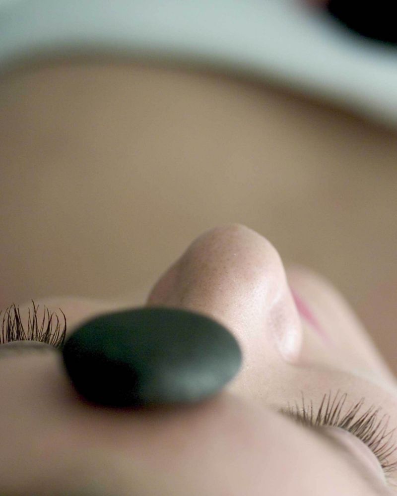 Using our harmonious blend of essential oils and restorative cocooning body cream warm with volcanic stones and to soothe aching muscles