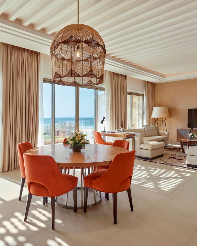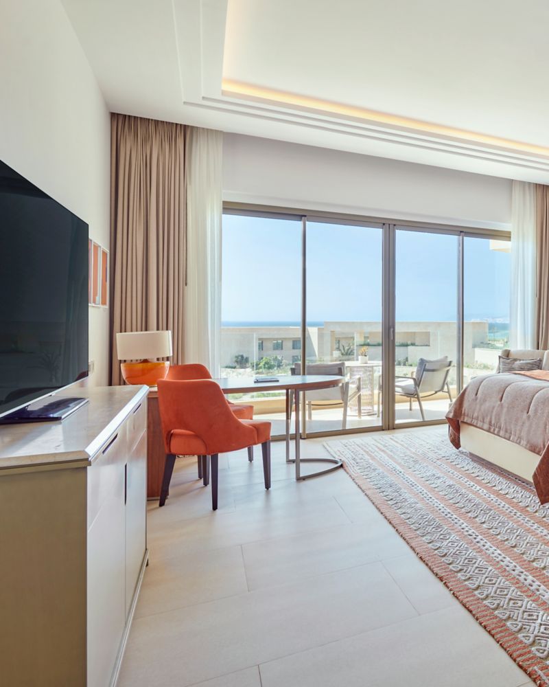 Deluxe King size bed Ocean view room with contemporary room design and a touch of Berber heritage, Oversized marble bathroom, large private balcony, Complimentary WIFI, Breakfast is included for up to two adults.