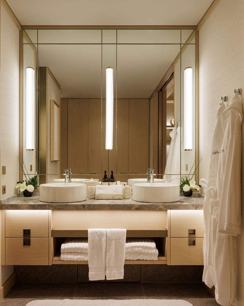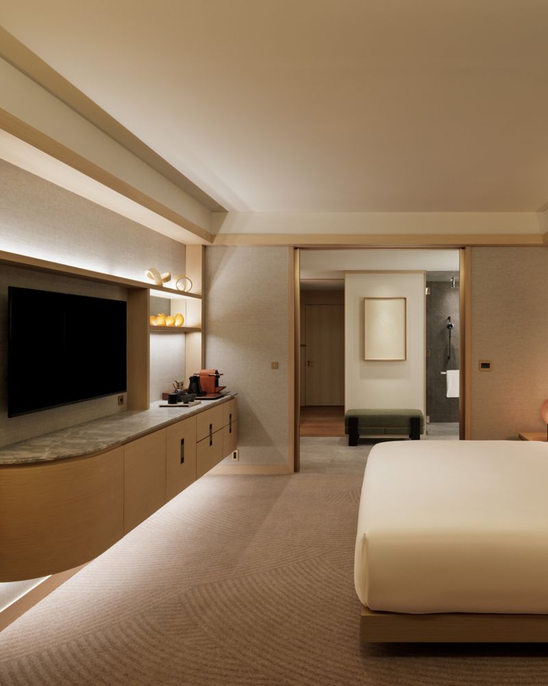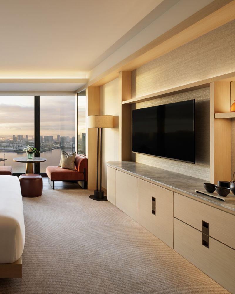 Experience true luxury in our spacious 52 sqm rooms with majestic views of Tokyo Bay. Revel in unparalled serenity in our flexible interiors, featuring a cozy window-side seating area inspired by traditional Japanese Engawa, a serene bathroom, and premium amenities. Every detail is designed to elevate your stay to a new level of comfort.