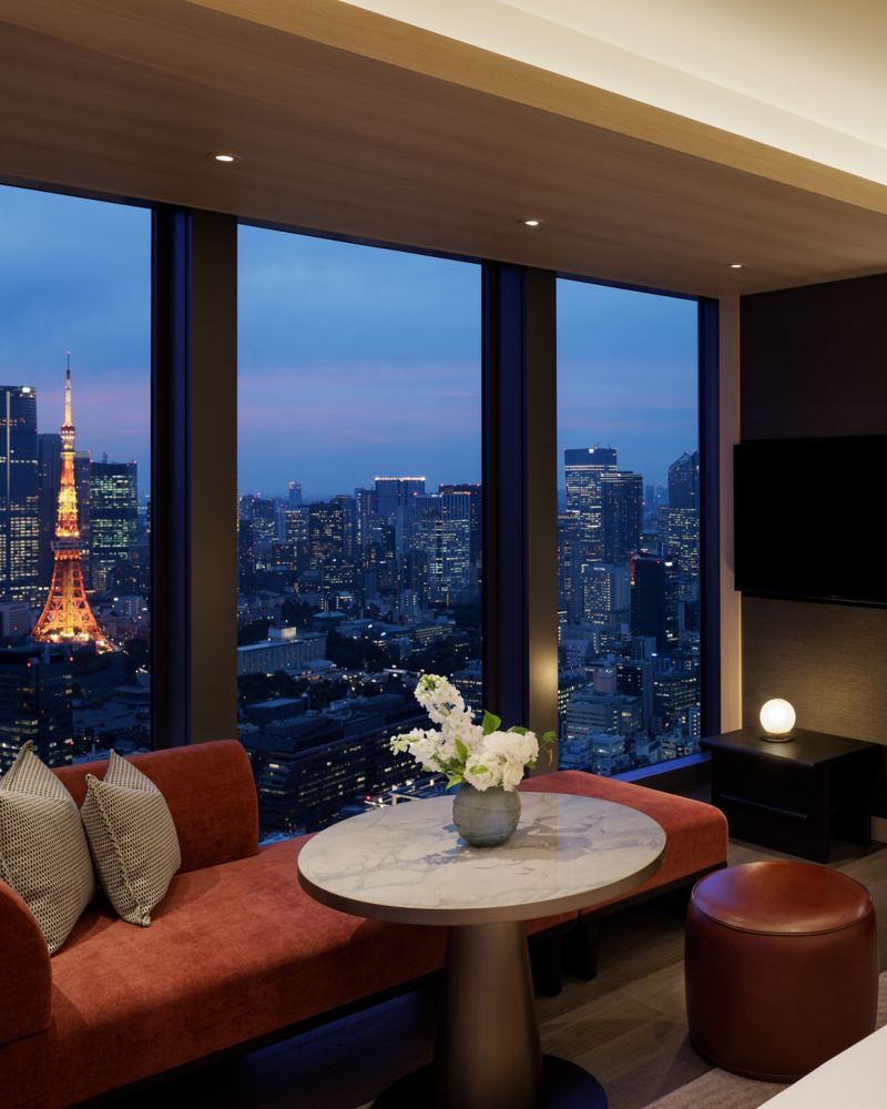 The room offers a Tokyo Tower view, an elegant bathroom with Le Labo amenities, a Marshall speaker and a Nespresso machine for the perfect stay. Connecting rooms are available upon request. Up to 2 adults and 1 child (11 and under).