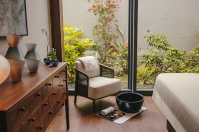 Our four treatment rooms, including a suite room, offer tranquil garden views that harmonize natural beauty with refined elegance. In this refined space where natural beauty and modern sophistication coexist, embark on a luxurious wellness experience that aligns body, mind, and spirit
